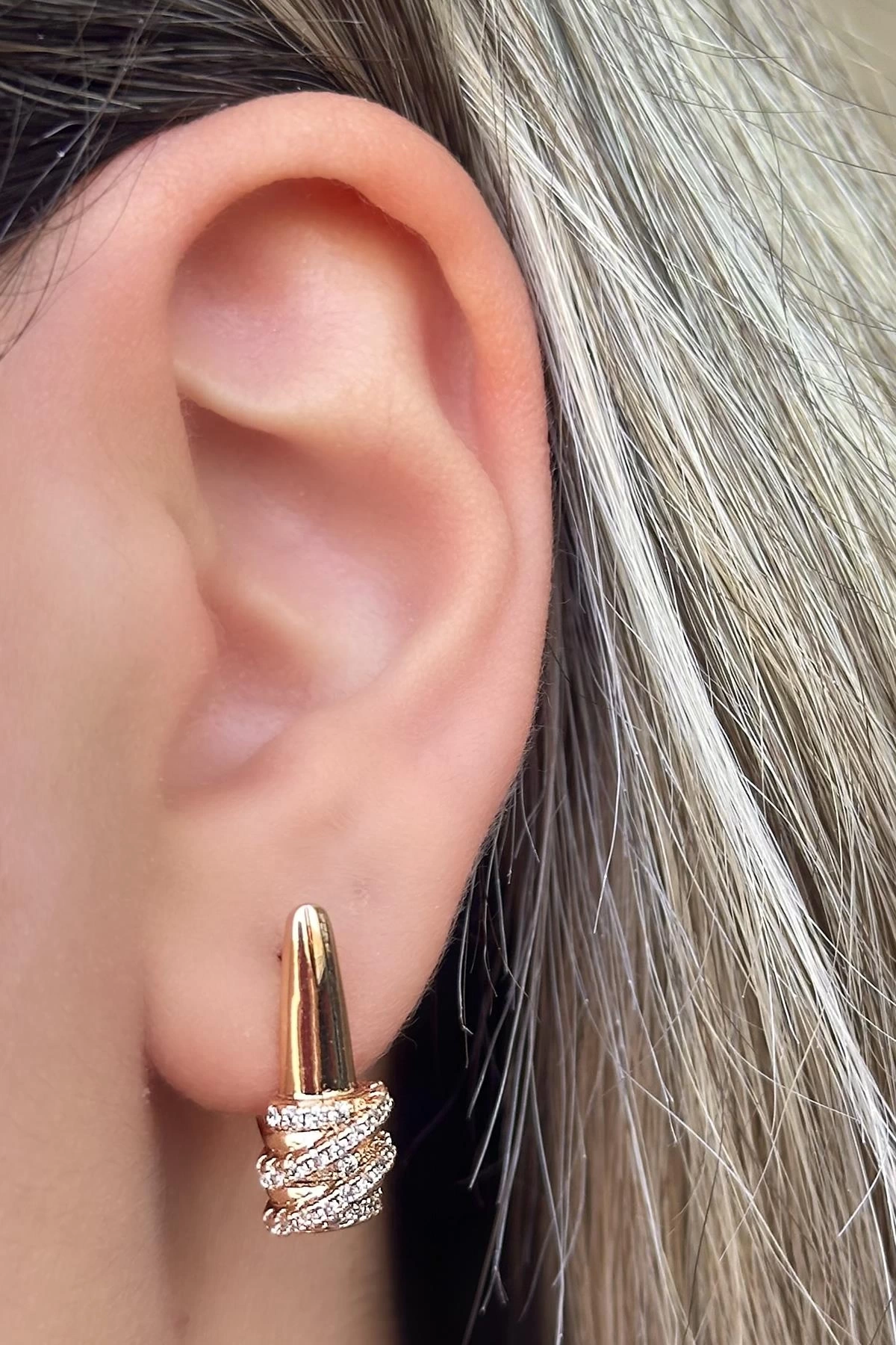 Altın Renk Taş Detaylı Çelik Xupıng Küpe (Çift)