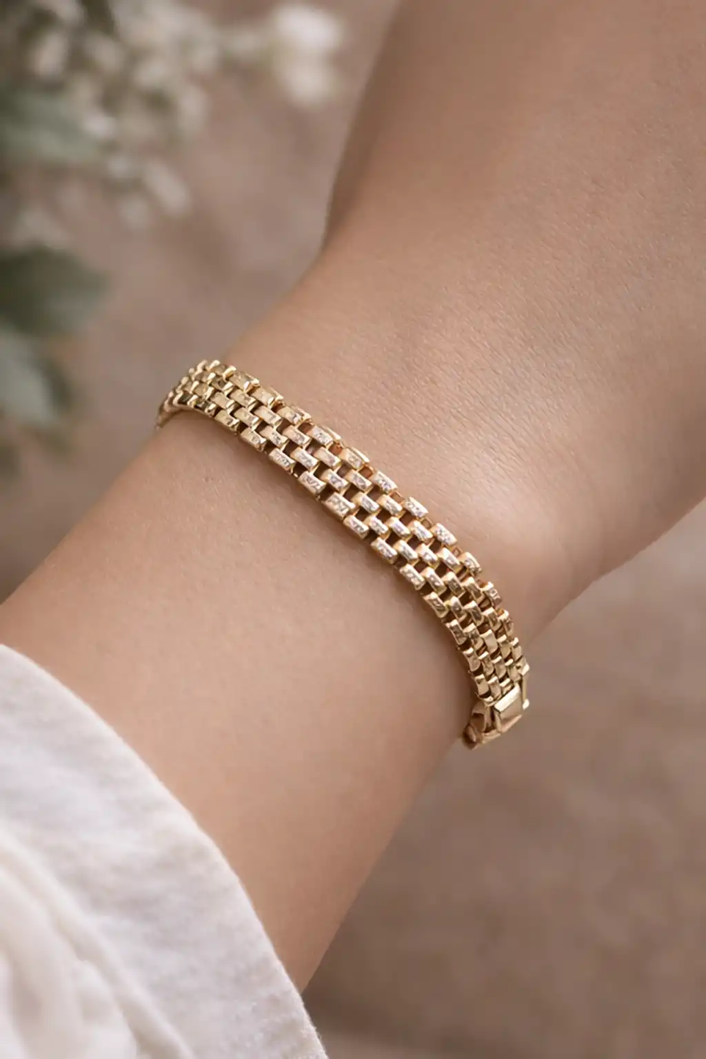 Altın Renk Taş Detaylı Çelik Xupıng VİP Bileklik