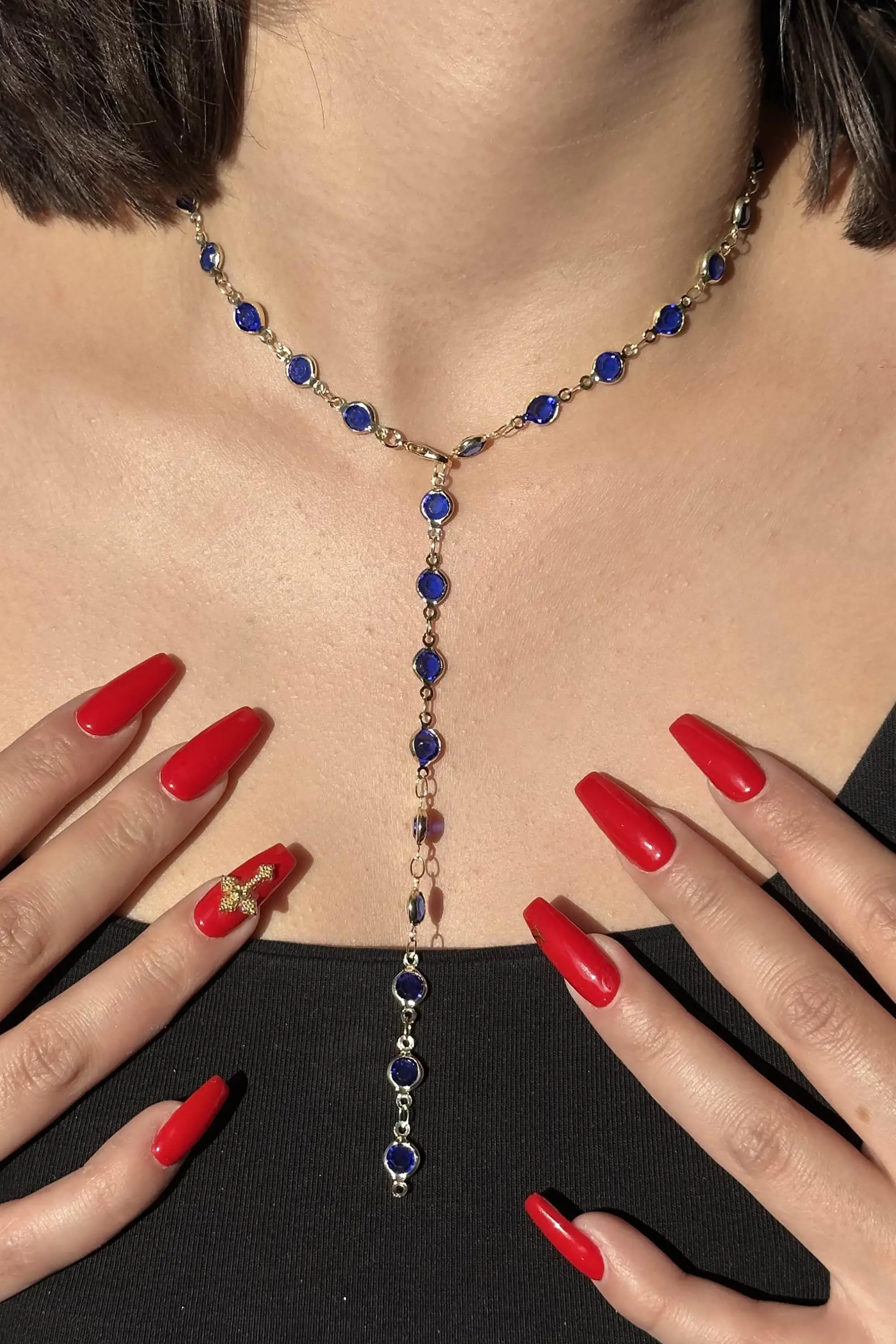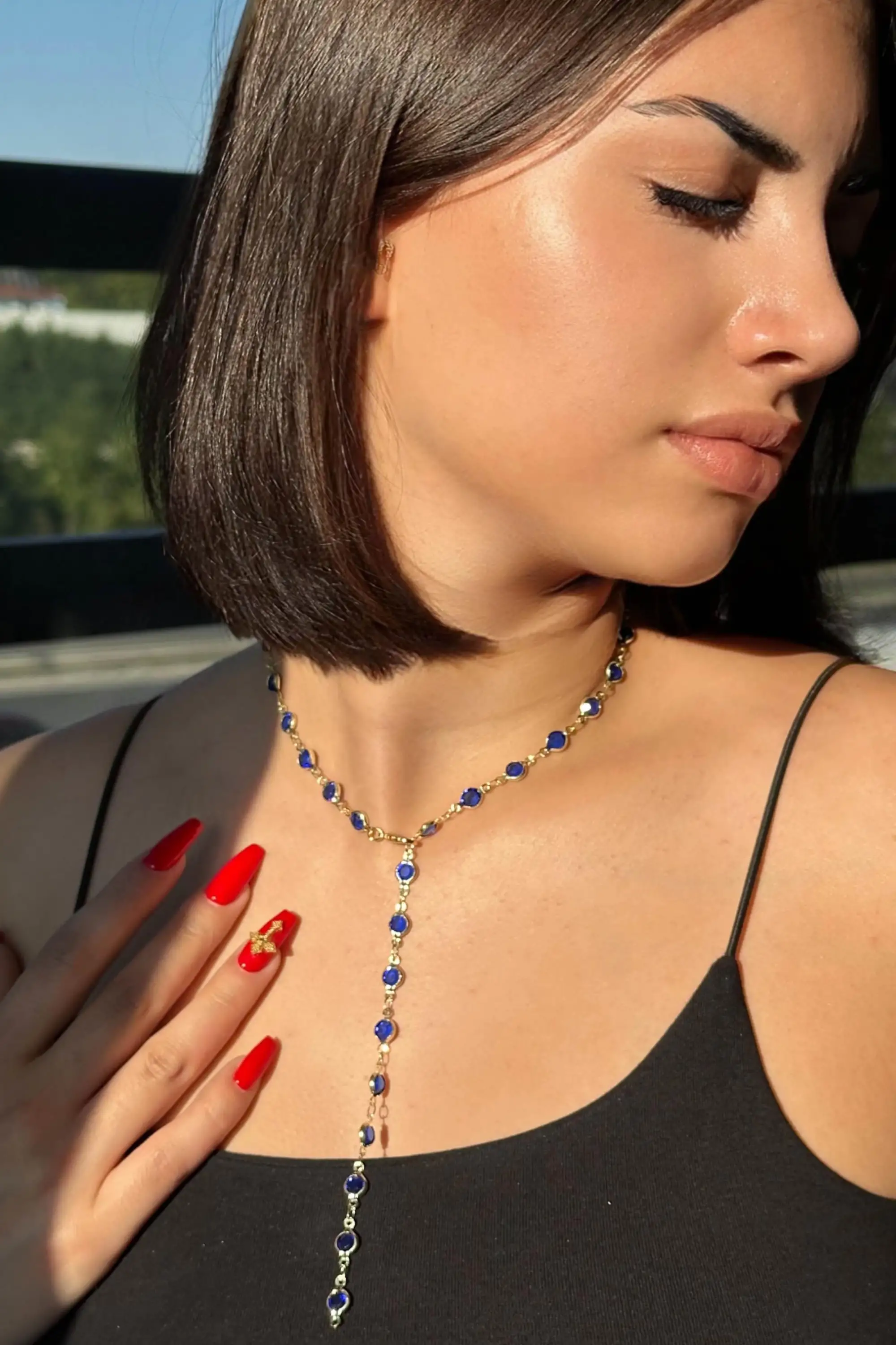 Gümüş Renk Taş Detaylı Çelik Y Kolye