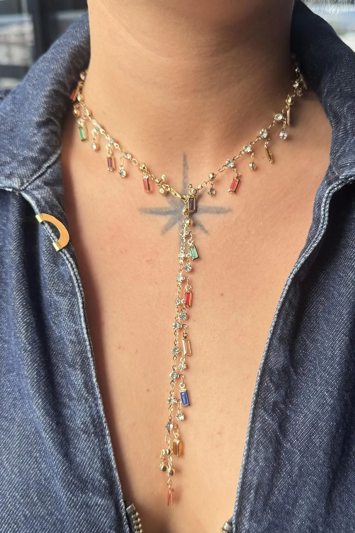Altın Renk Taş Detaylı Çelik Y Kolye