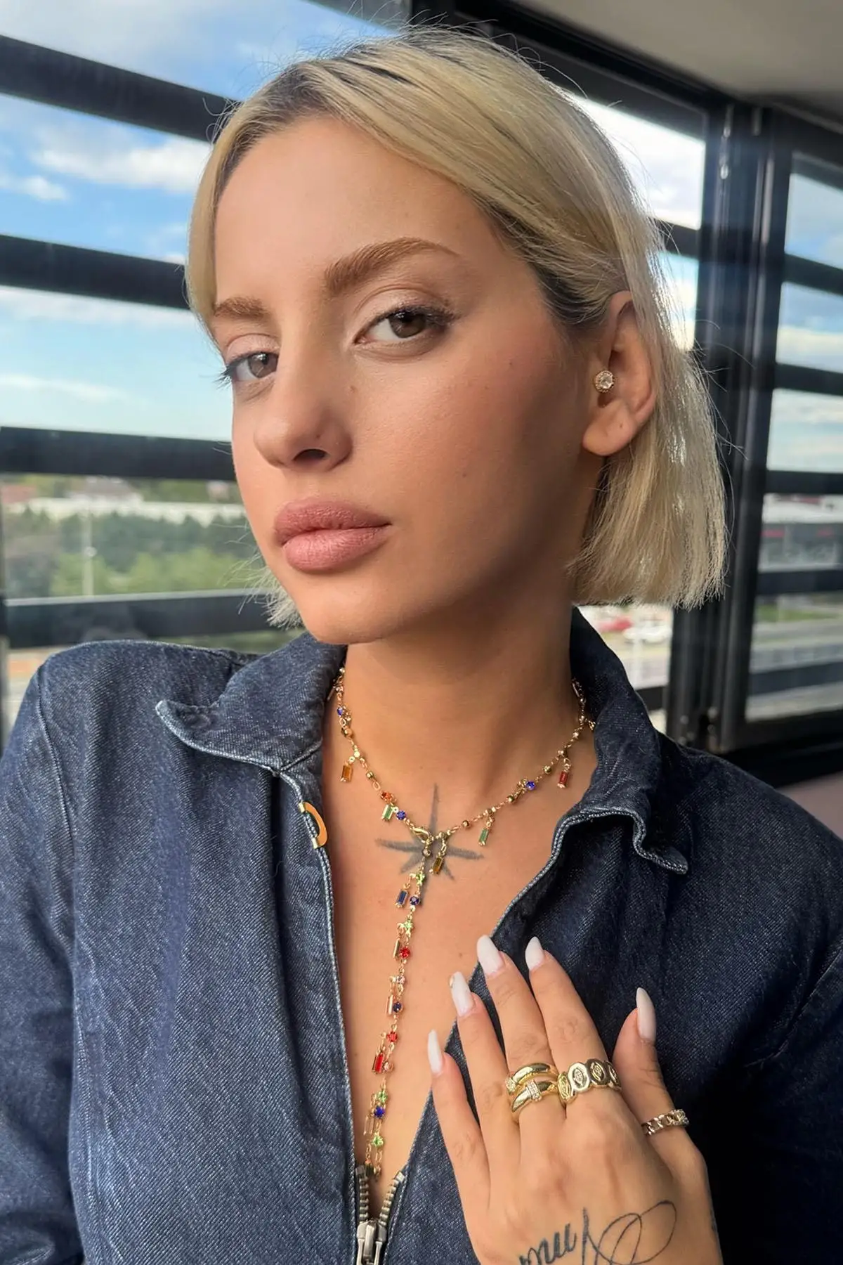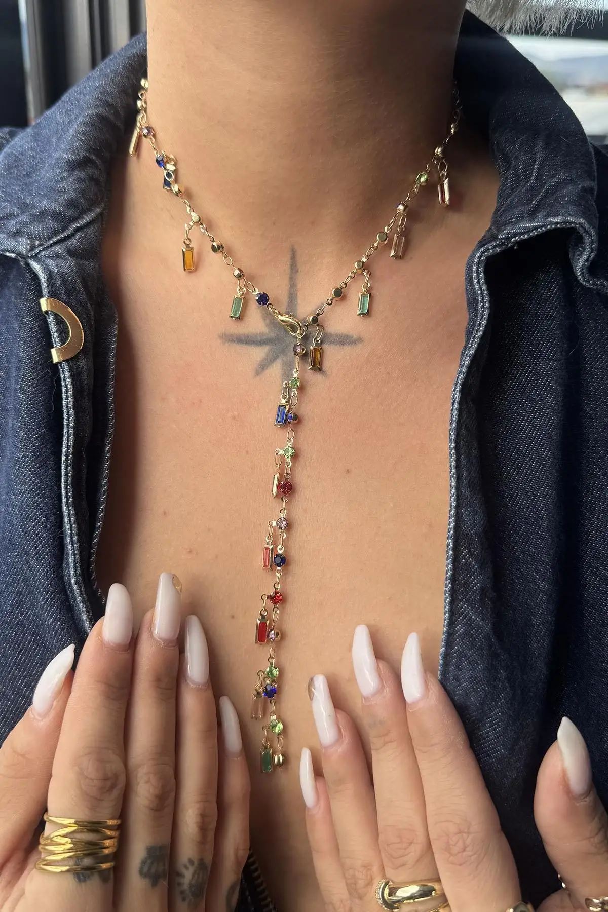 Altın Renk Taş Detaylı Çelik Y Kolye