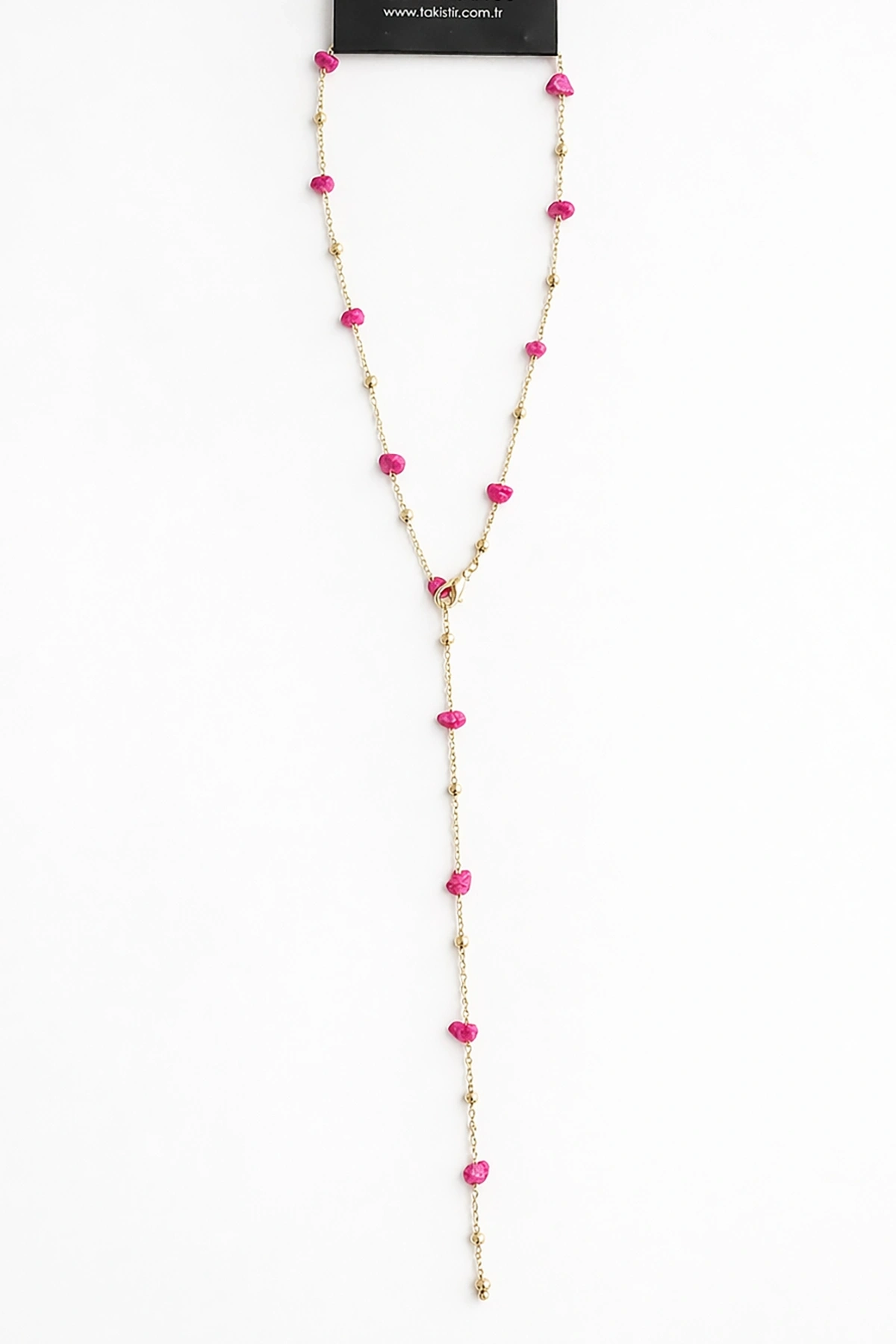 Altın Renk Taş Detaylı Çelik Y Kolye