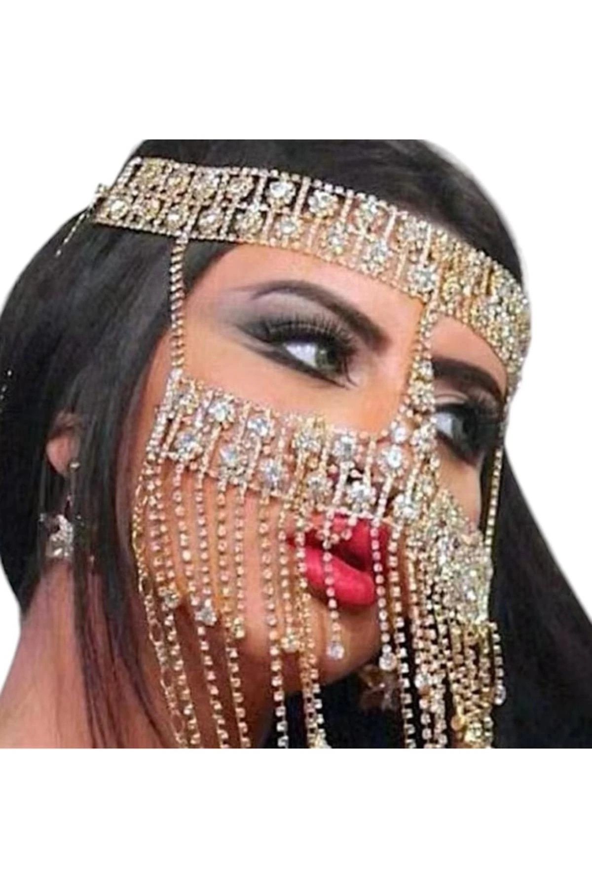 Altın Renk Taş Detaylı Dansöz Maskesi