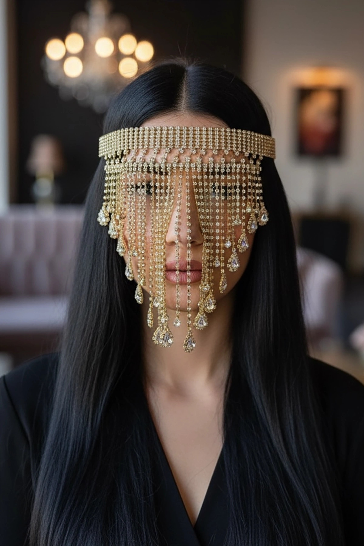 Altın Renk Taş Detaylı Dansöz Maskesi