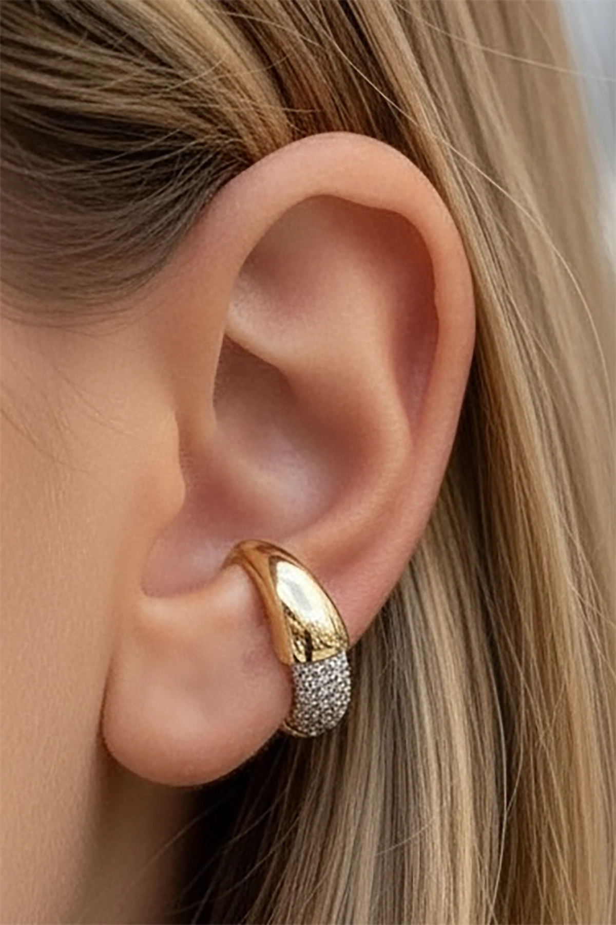 Altın Renk Taş Detaylı Ear Cuff (Tek)