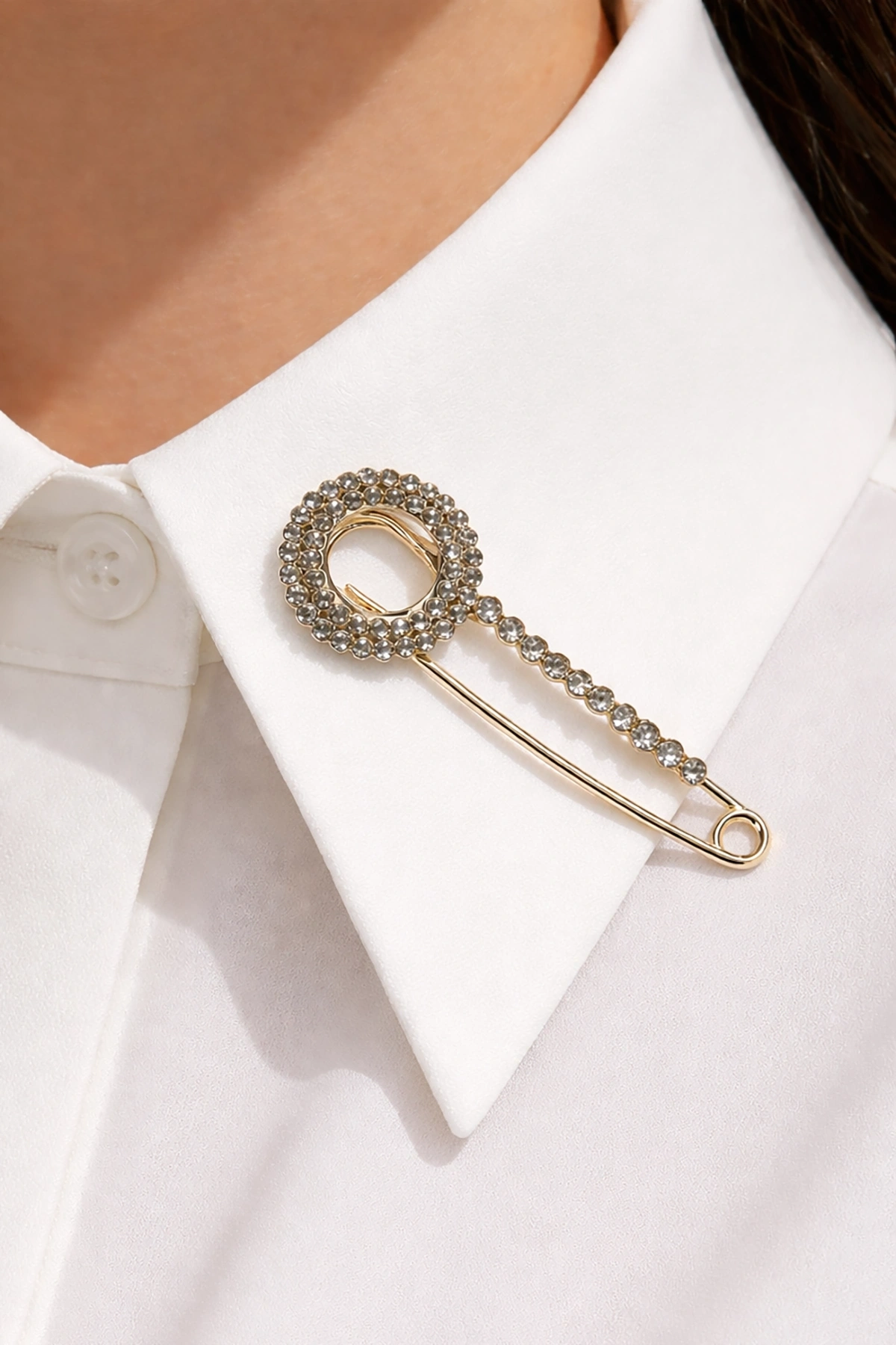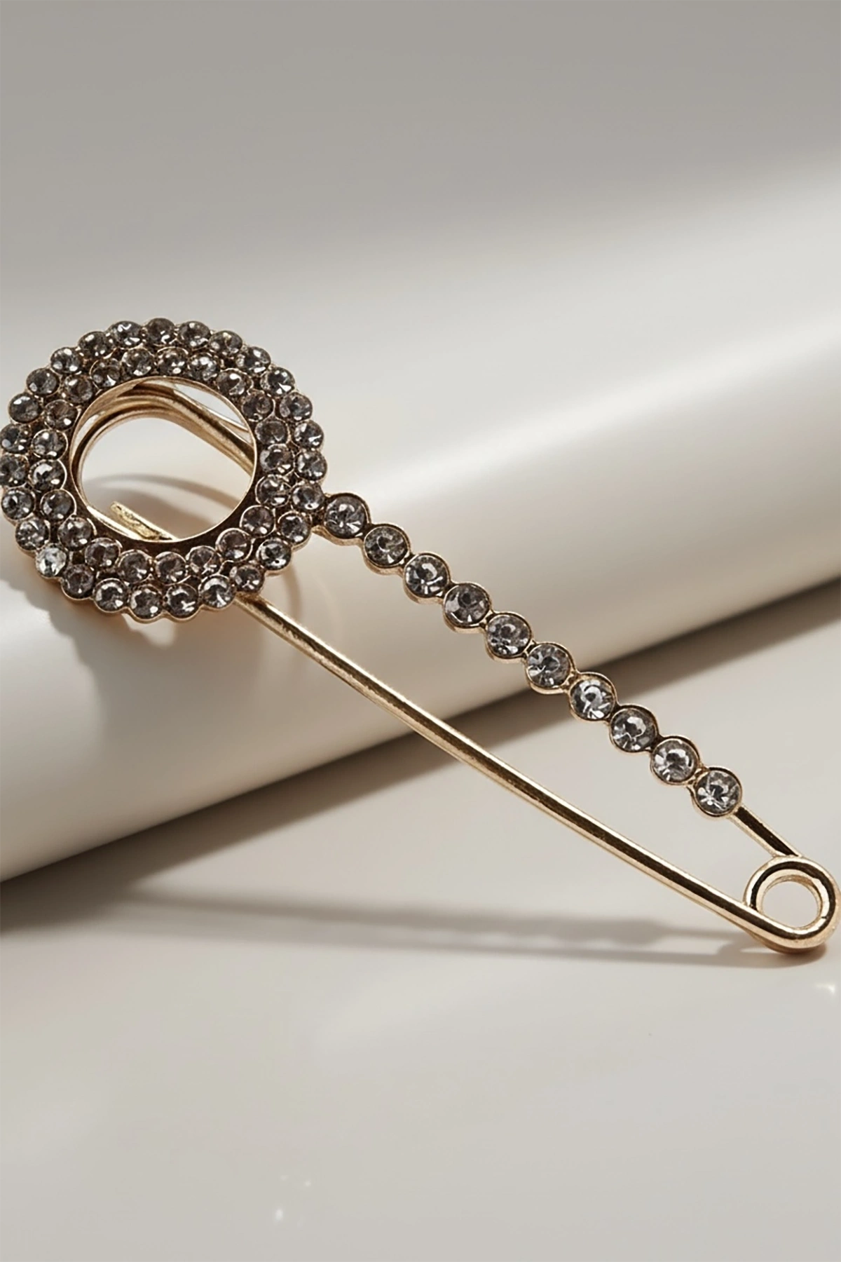 Altın Renk Taş Detaylı Eşarp İğnesi /Broş