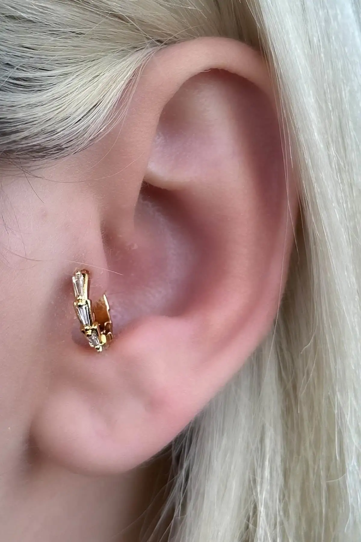 Altın Renk Taş Detaylı Halka Çelik Tragus/Kıkırdak Küpe/Piercing (Tek)