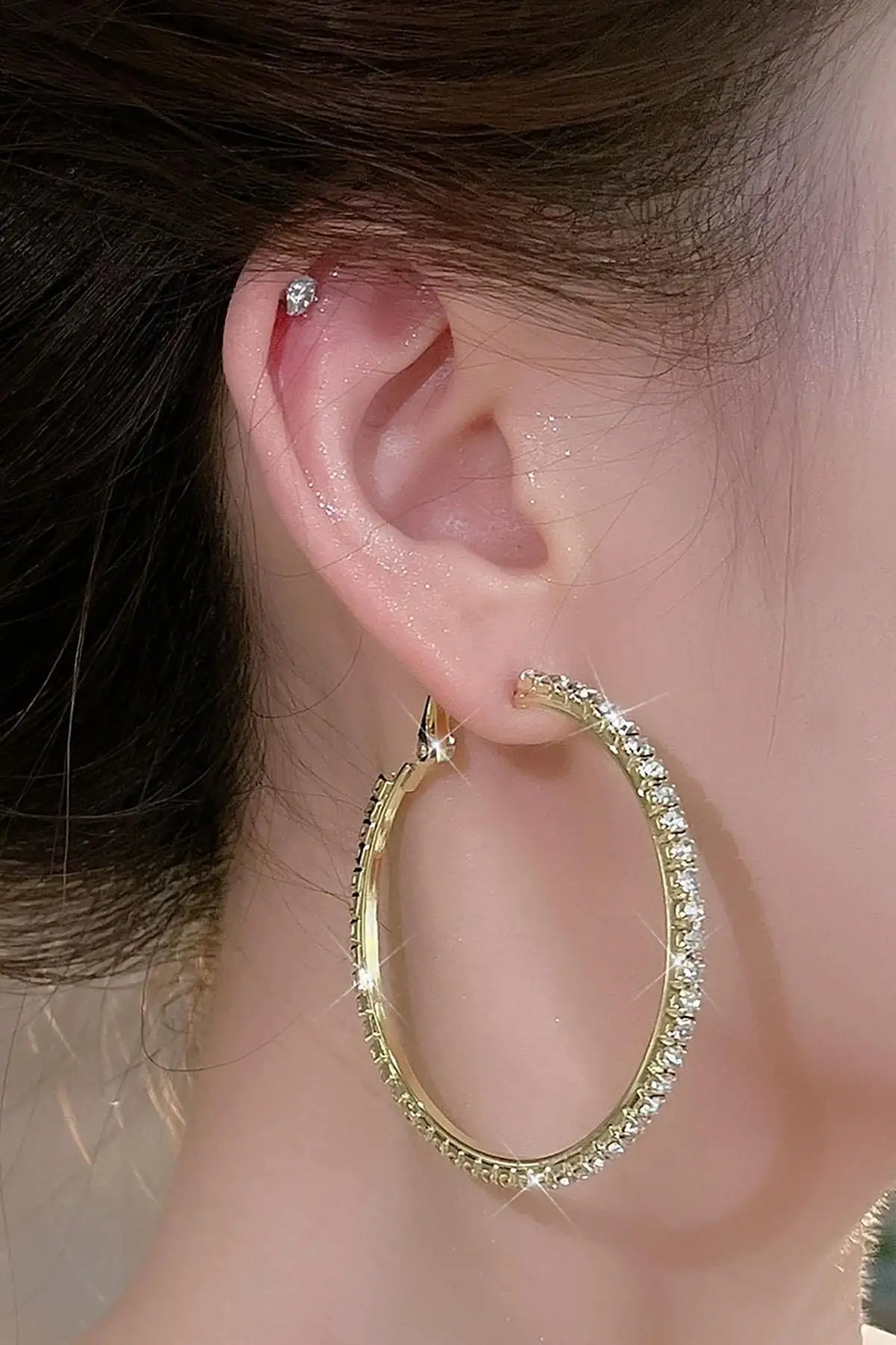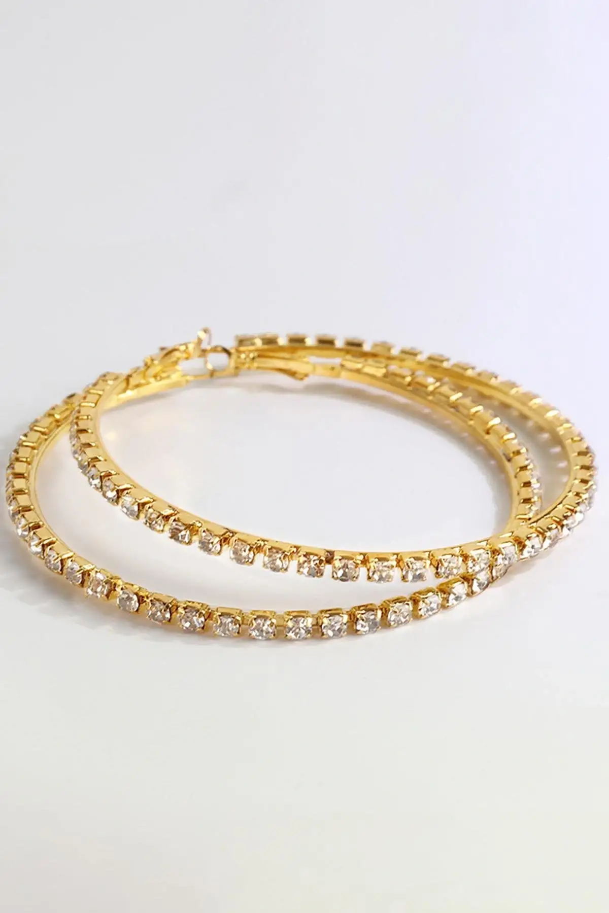Altın Renk Taş Detaylı Halka Küpe 75Mm (Çift)