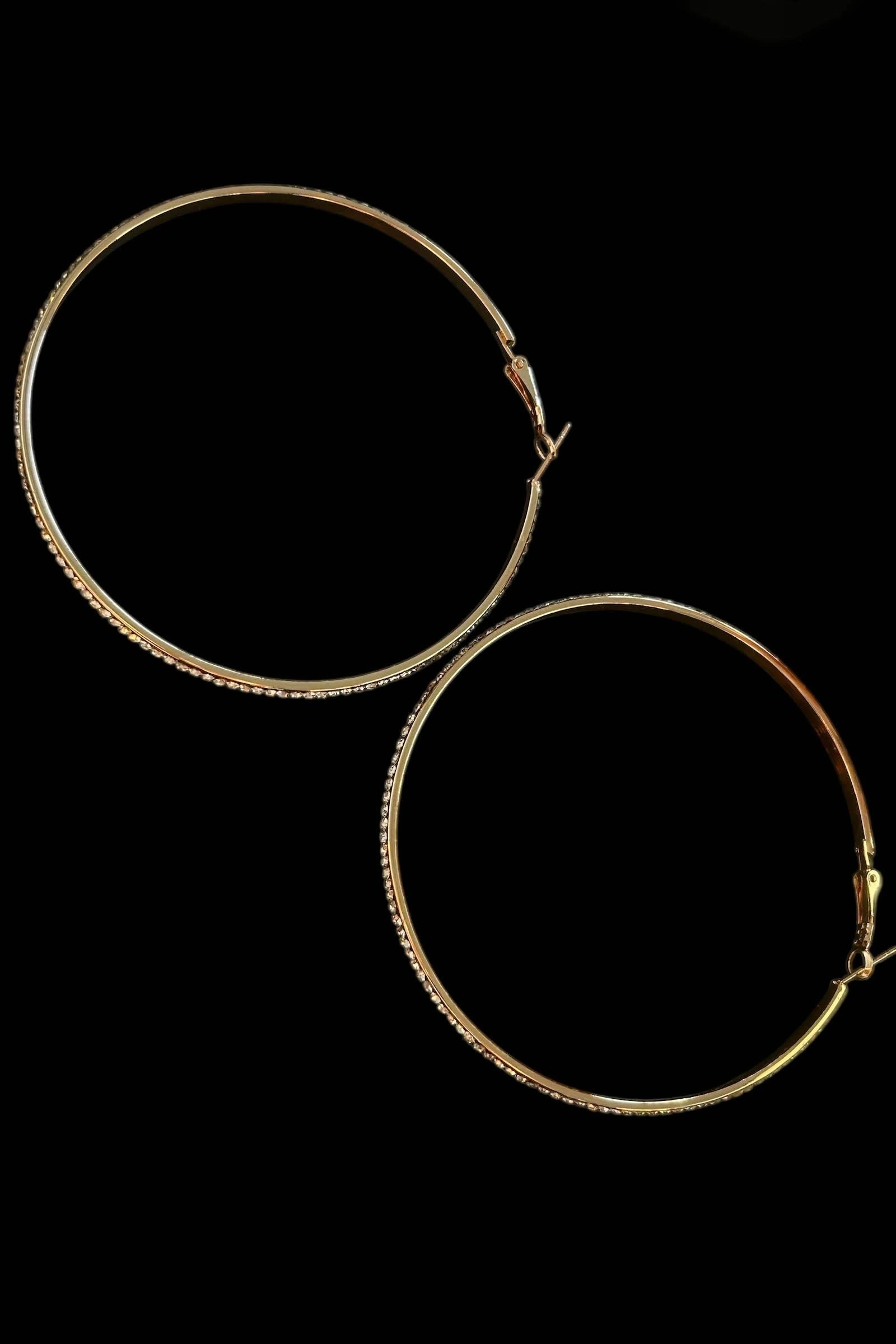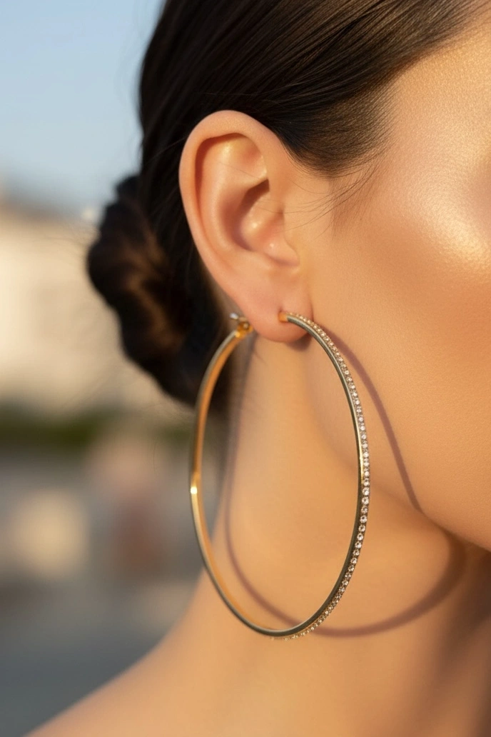 Altın Renk Taş Detaylı Halka Küpe (Çift)