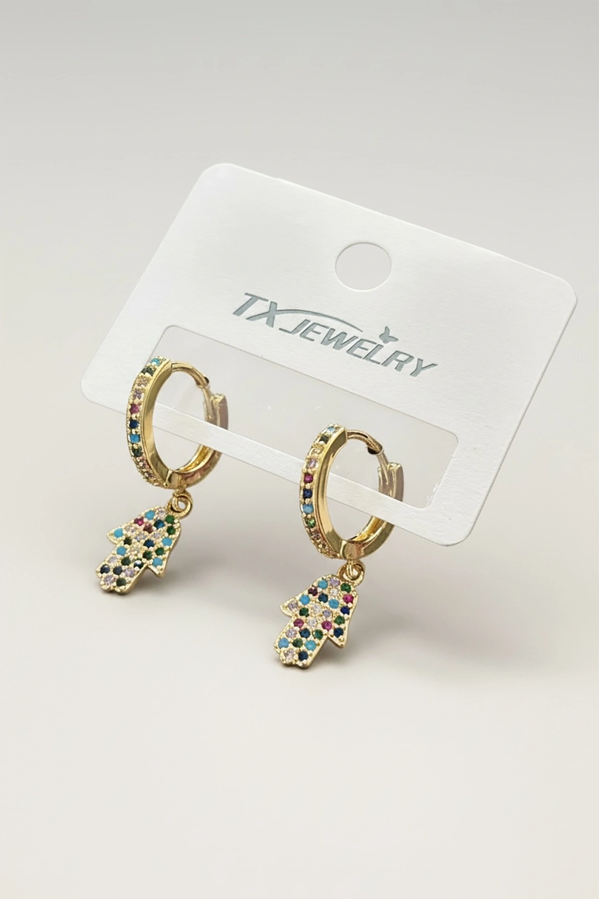 Altın Renk Taş Detaylı Halka Tx Küpe (Çift)