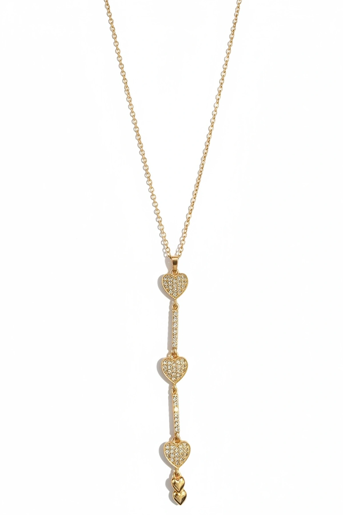 Altın Renk Kalp Figürlü 14K Altın Kaplama Y Kolye
