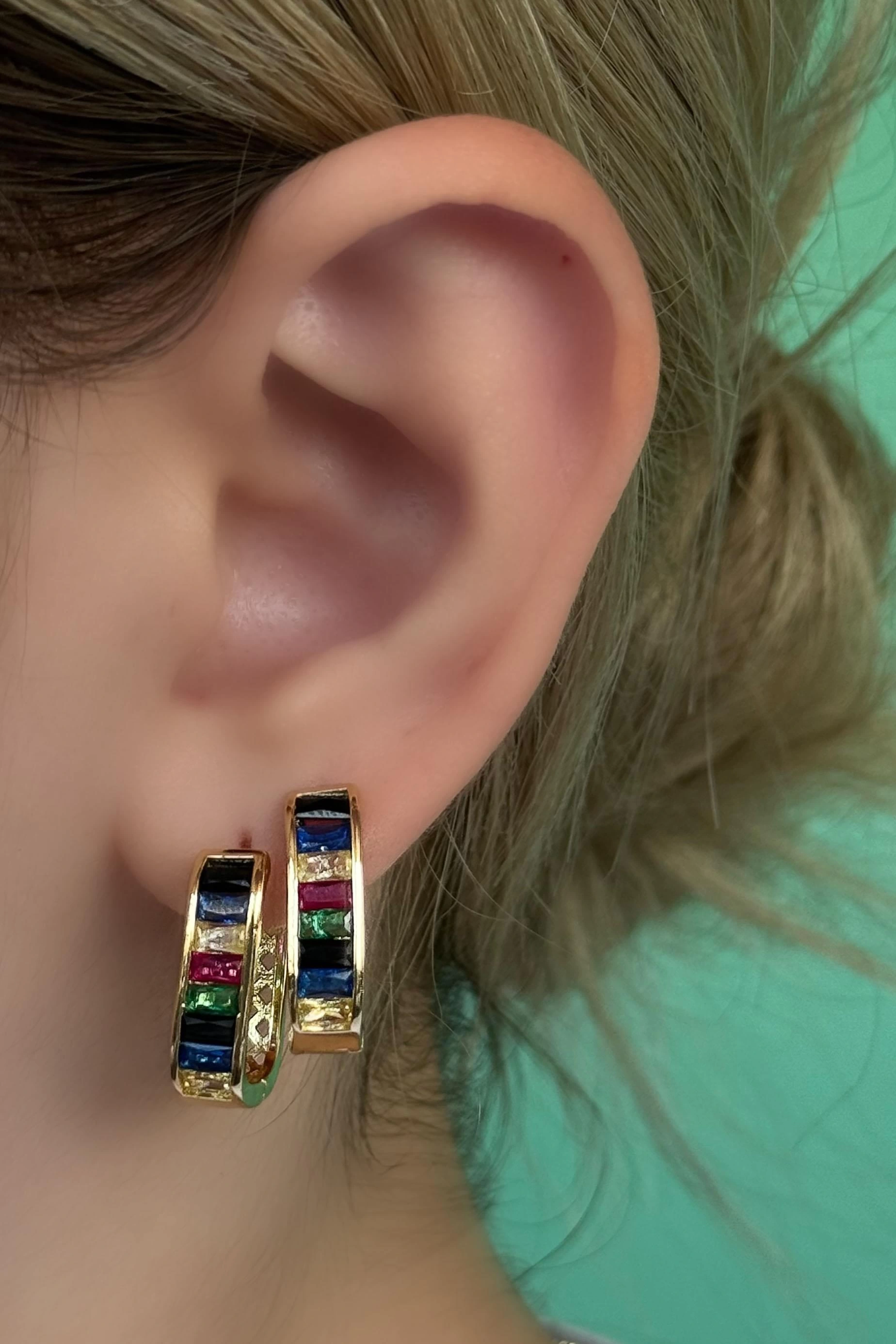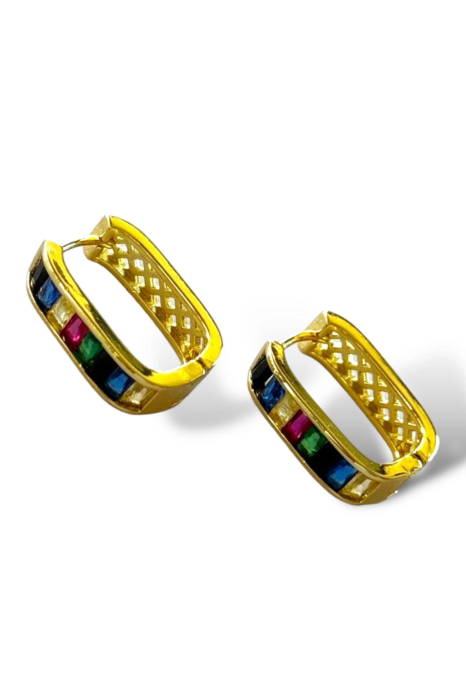 Altın Renk Taş Detaylı Kare Küpe (Çift)