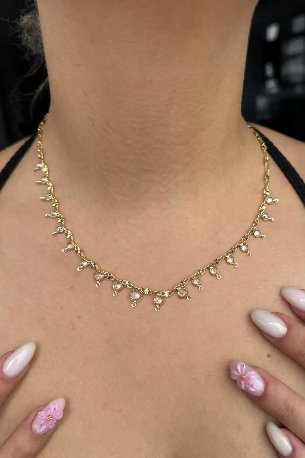 Altın Renk Taşlı Su Yolu Kolye