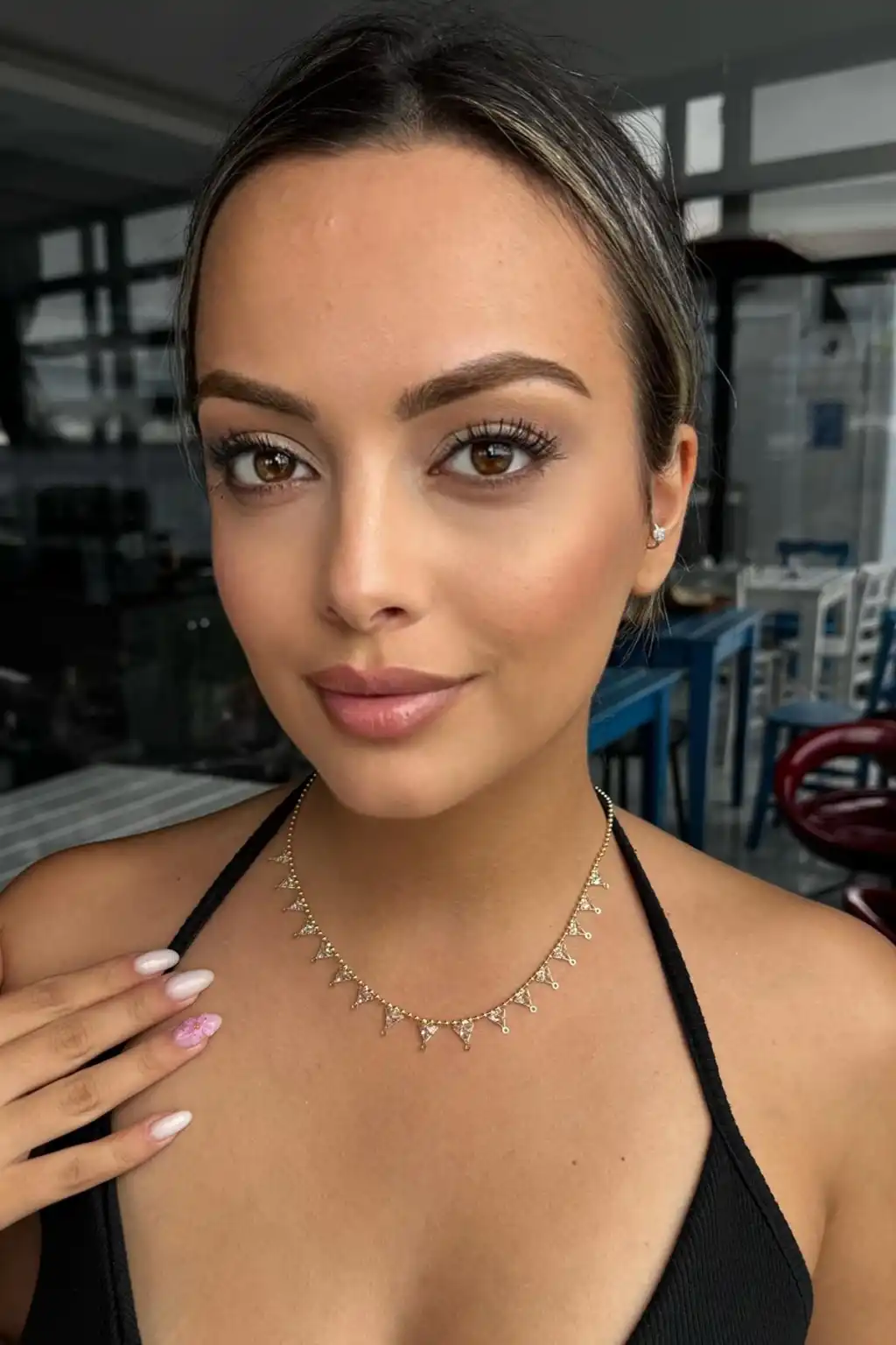 Altın Renk Göz Figürlü Taş Detaylı 14K Altın Kaplama VİP Kolye