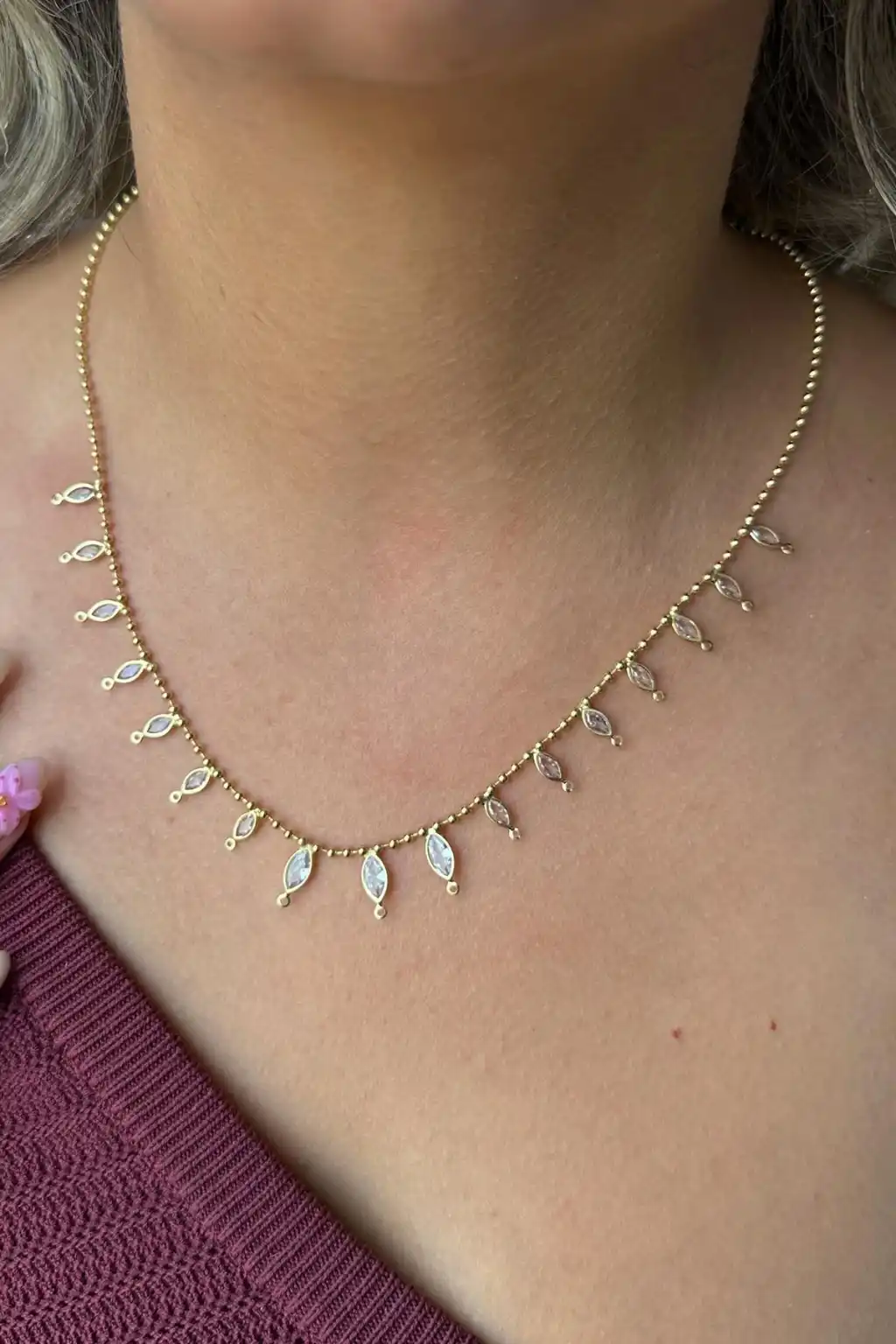 Altın Renk Taşlı Su Yolu Kolye