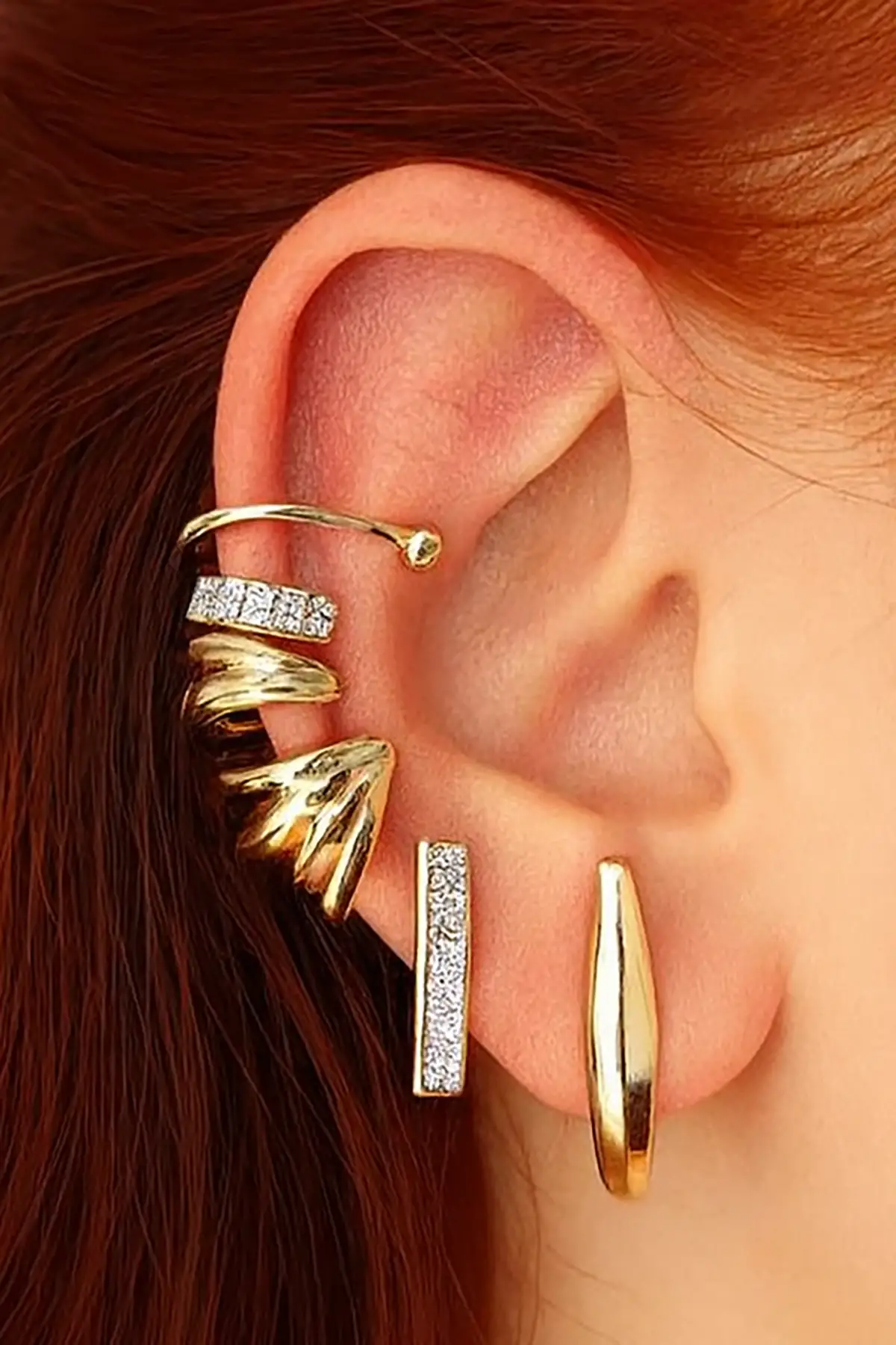 Altın Renk Taş Detaylı Kulak Aksesuarı (Tek)