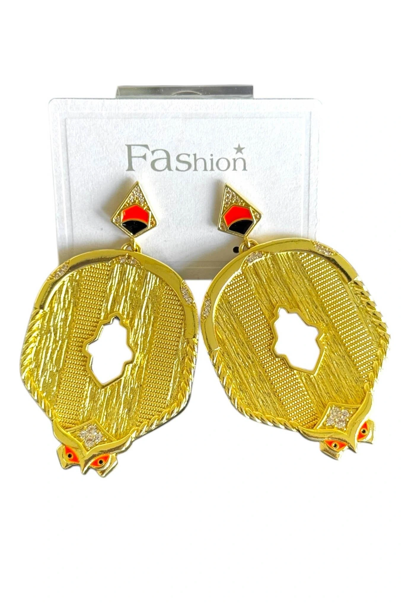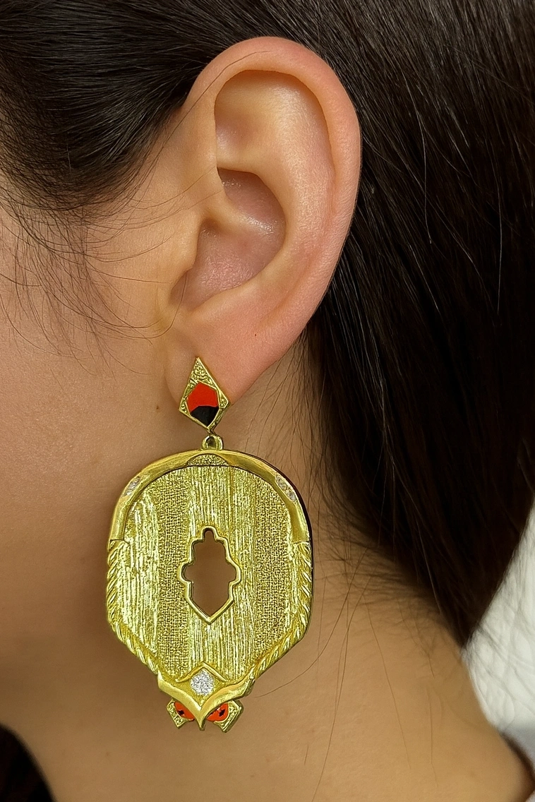 Altın Renk Taş Detaylı Küpe (Çift)