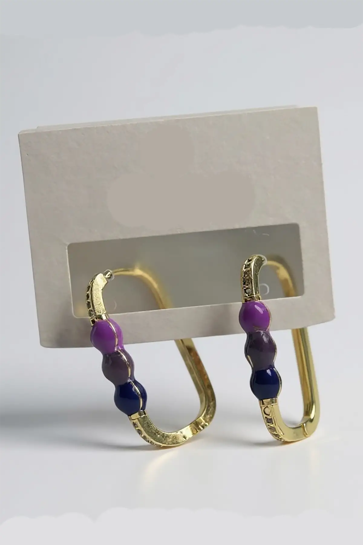 Altın Renk Taş Detaylı 14K Altın Kaplama TX Küpe (Çift)