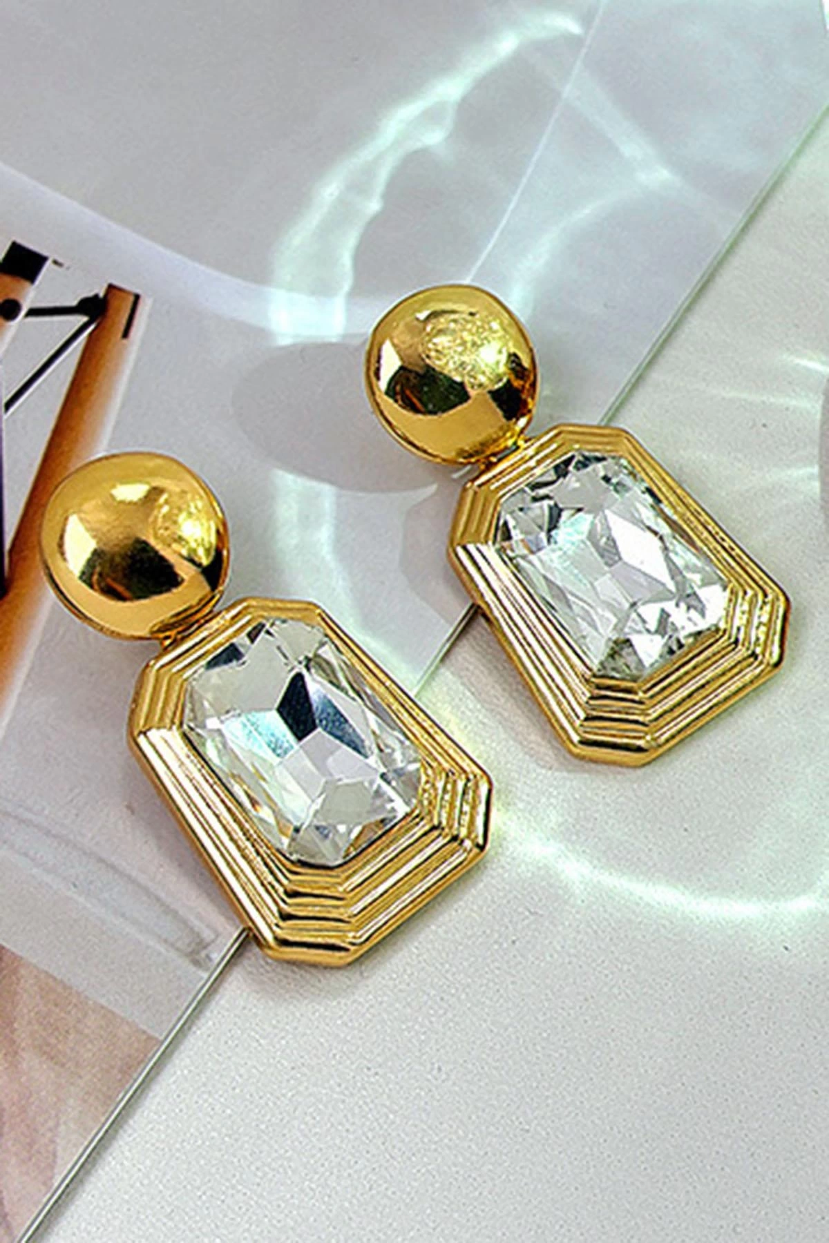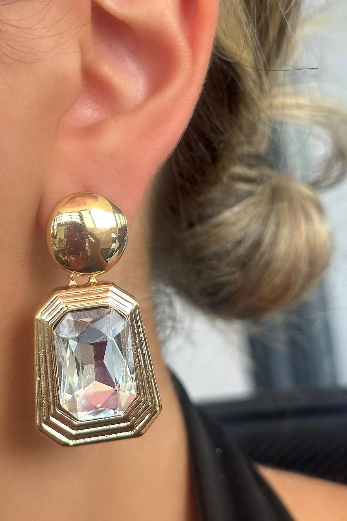 Altın Renk Taş Detaylı Küpe (Çift)