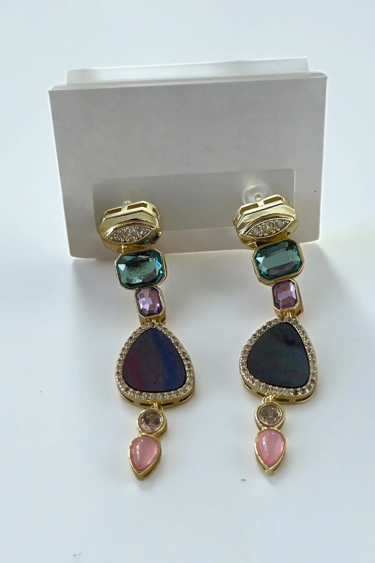 Altın Renk Taş Detaylı 14K Altın Kaplama Küpe (Çift)