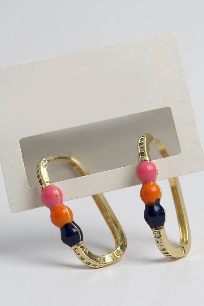 Altın Renk Taş Detaylı Küpe (Çift)