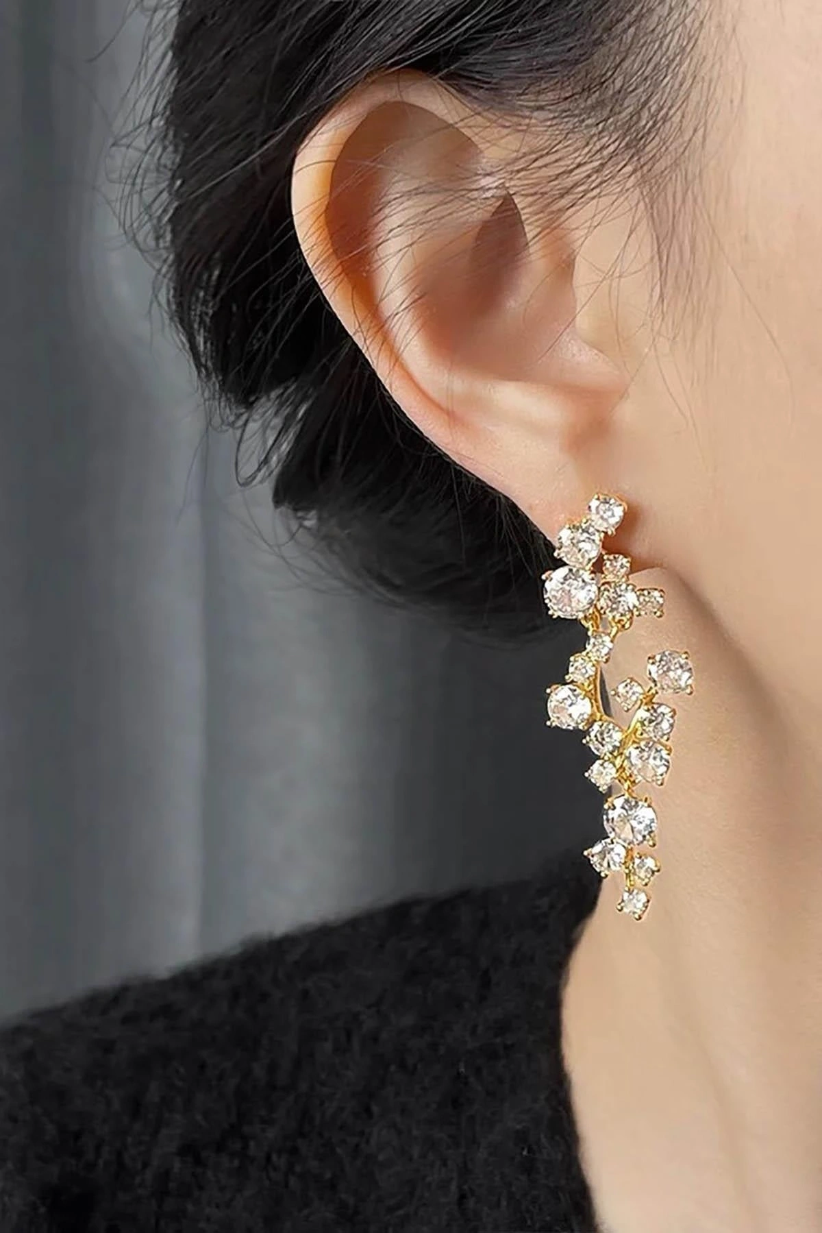 Altın Renk Taş Detaylı Küpe (Çift)
