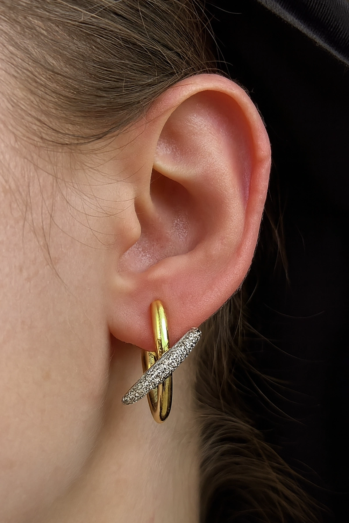 - Zarif tasarımıyla dikkat çeken bu çift küpe, detaylarıyla göz alıcı bir görünüm sunar.