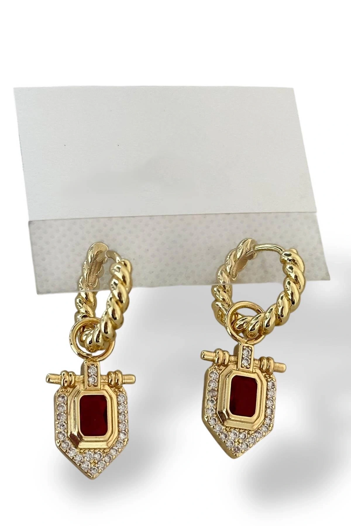 Altın Renk Taş Detaylı Küpe (Çift)