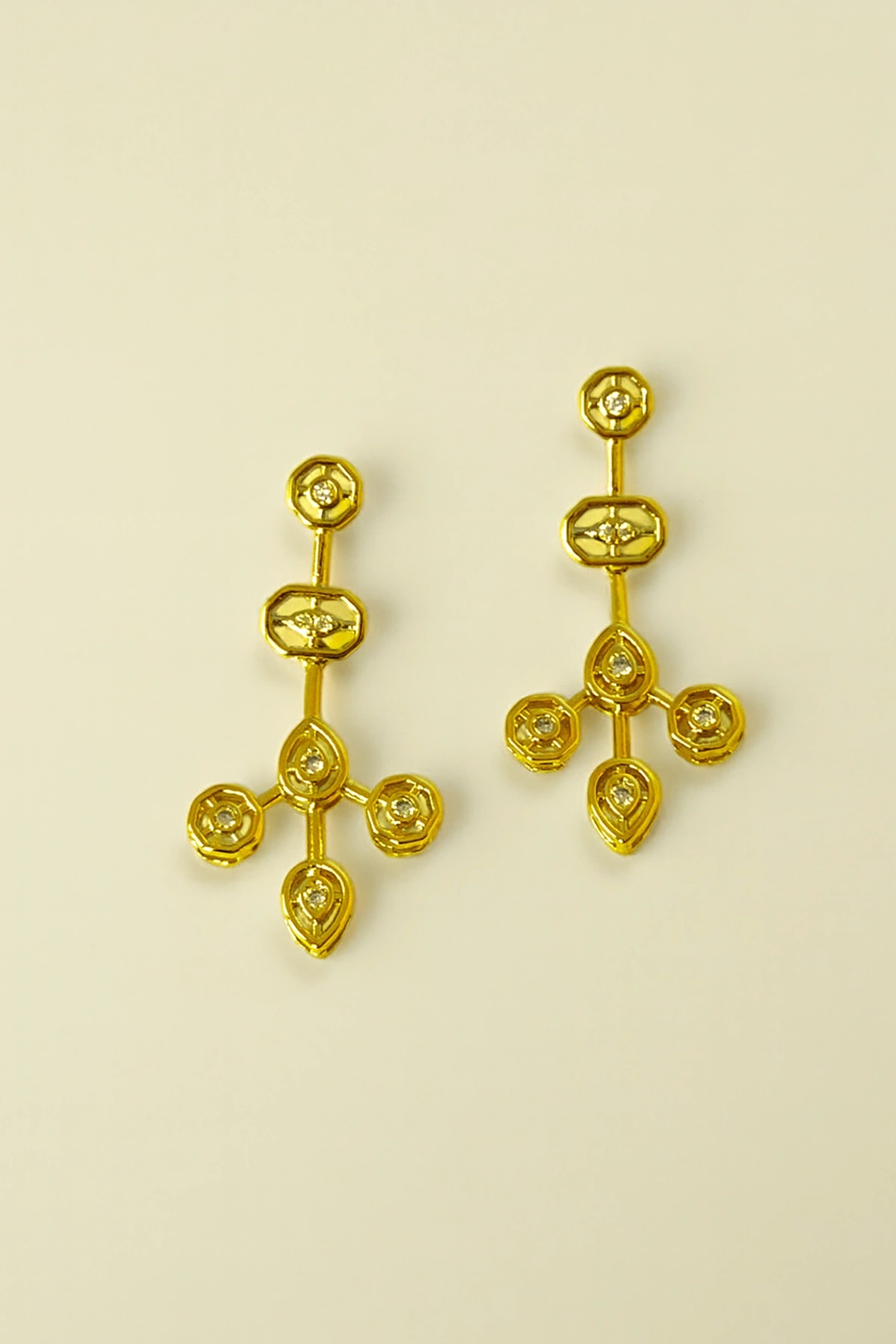 Altın Renk Taş Detaylı Küpe (Çift)