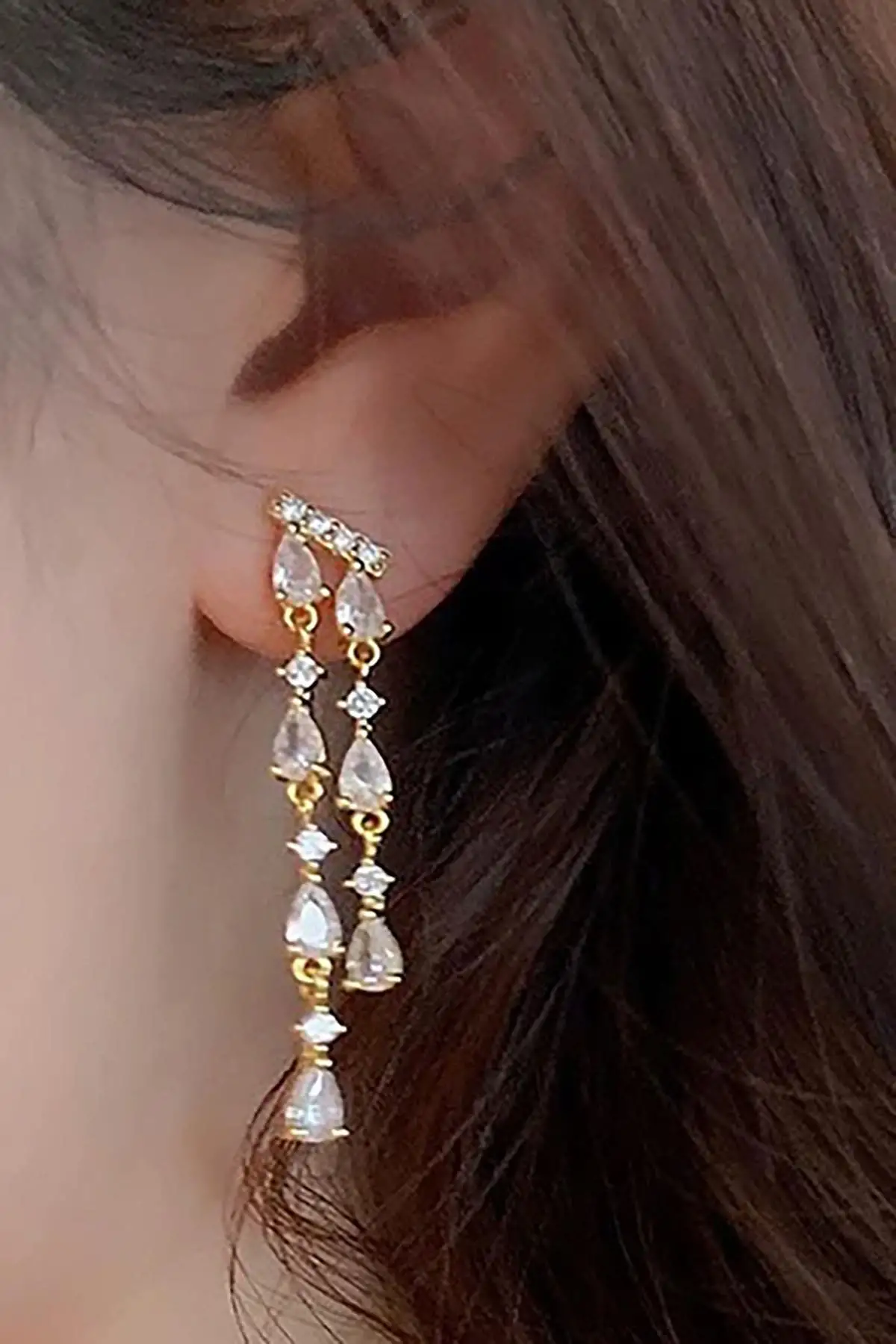 Altın Renk İnci Detaylı Taşlı Küpe (Çift)