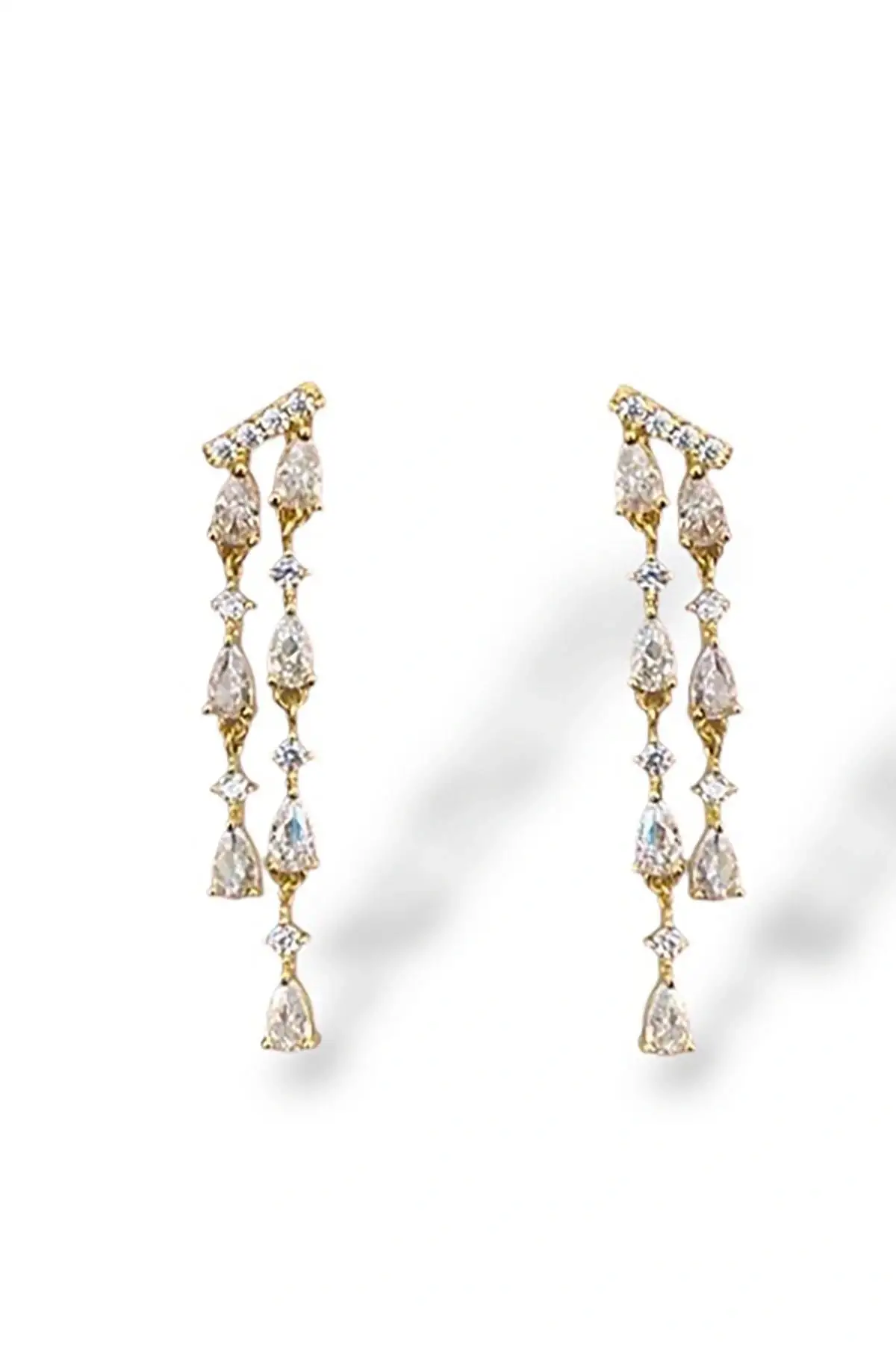 Gümüş Renk Taş Detaylı 14K Altın Kaplama TX Küpe (Çift)