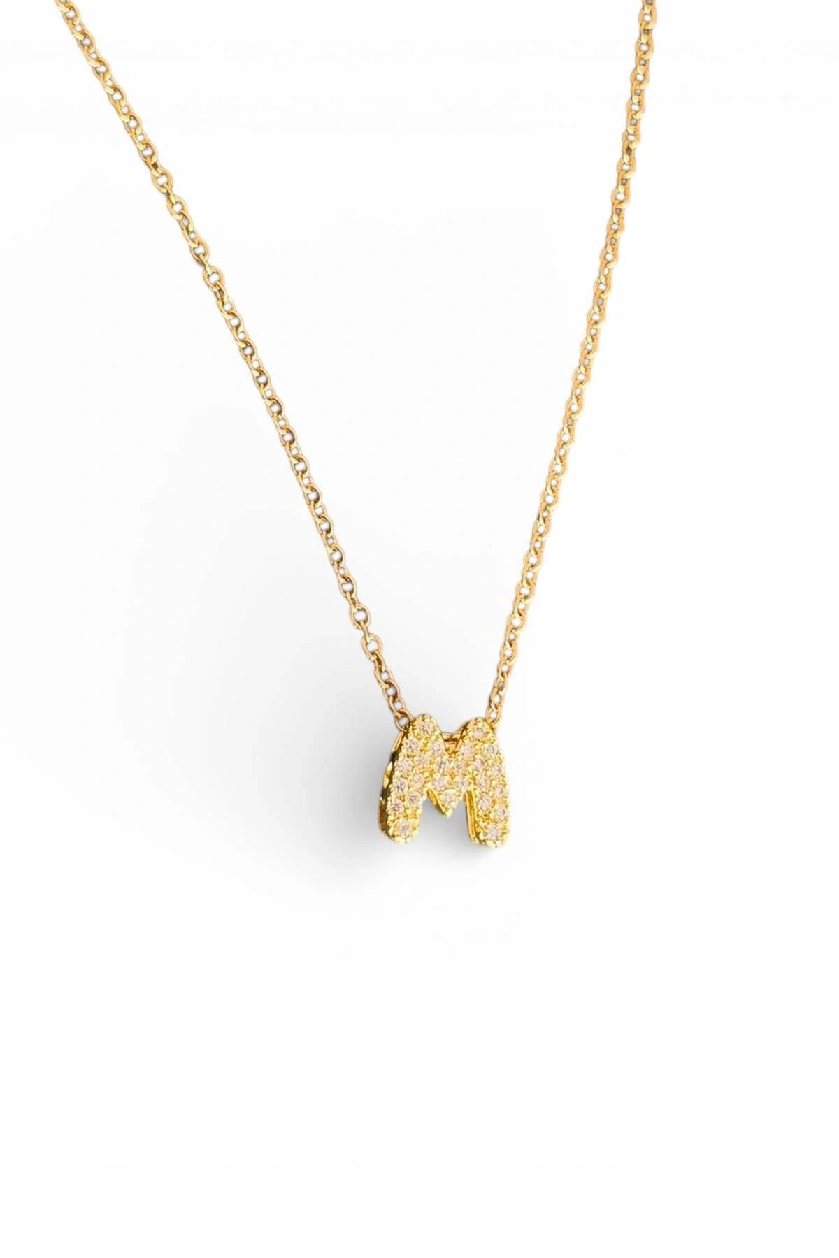 Altın Renk Taş Detaylı M Harfli Mini Çelik Kolye