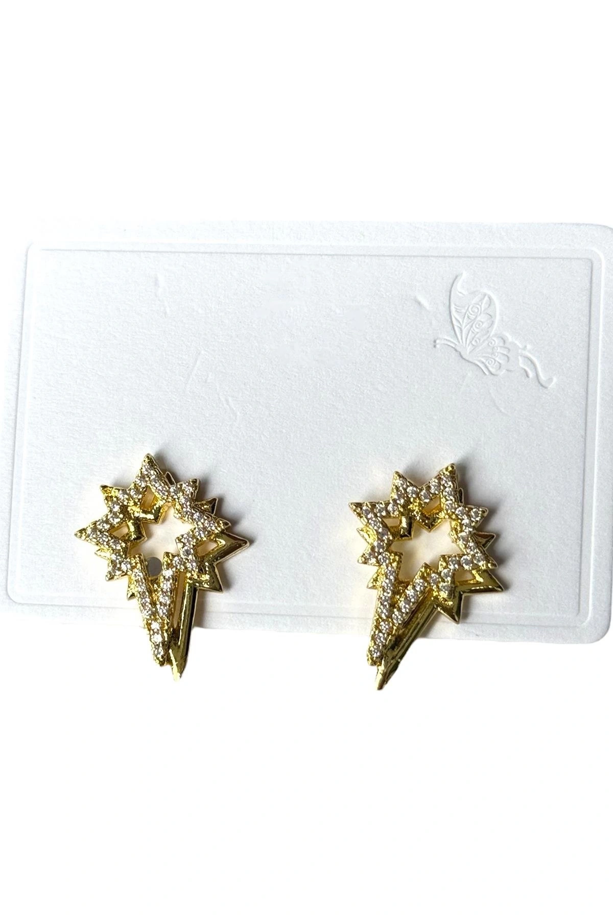 Altın Renk Taş Detaylı Metal Küpe (Çift)