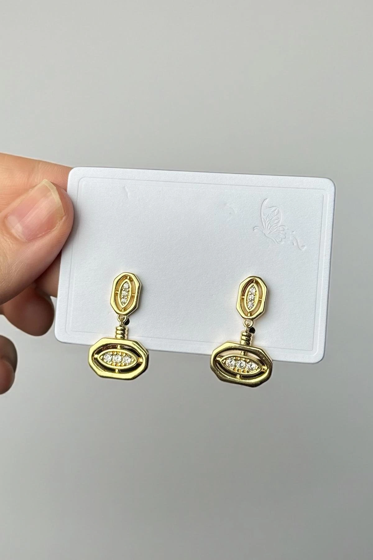 Altın Renk Taş Detaylı Metal Küpe (Çift)