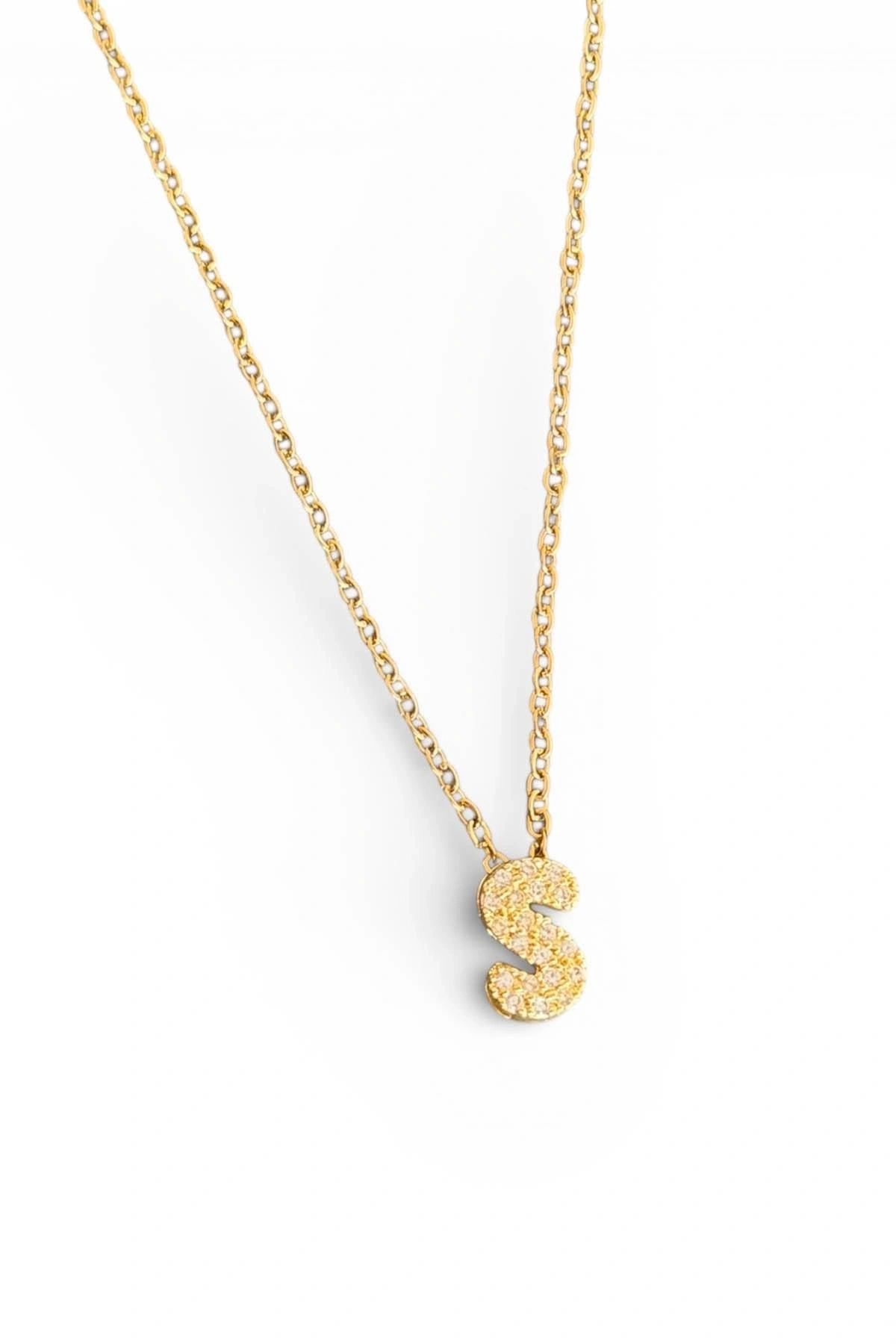 Altın Renk Taş Detaylı S Harfli Mini Çelik Kolye