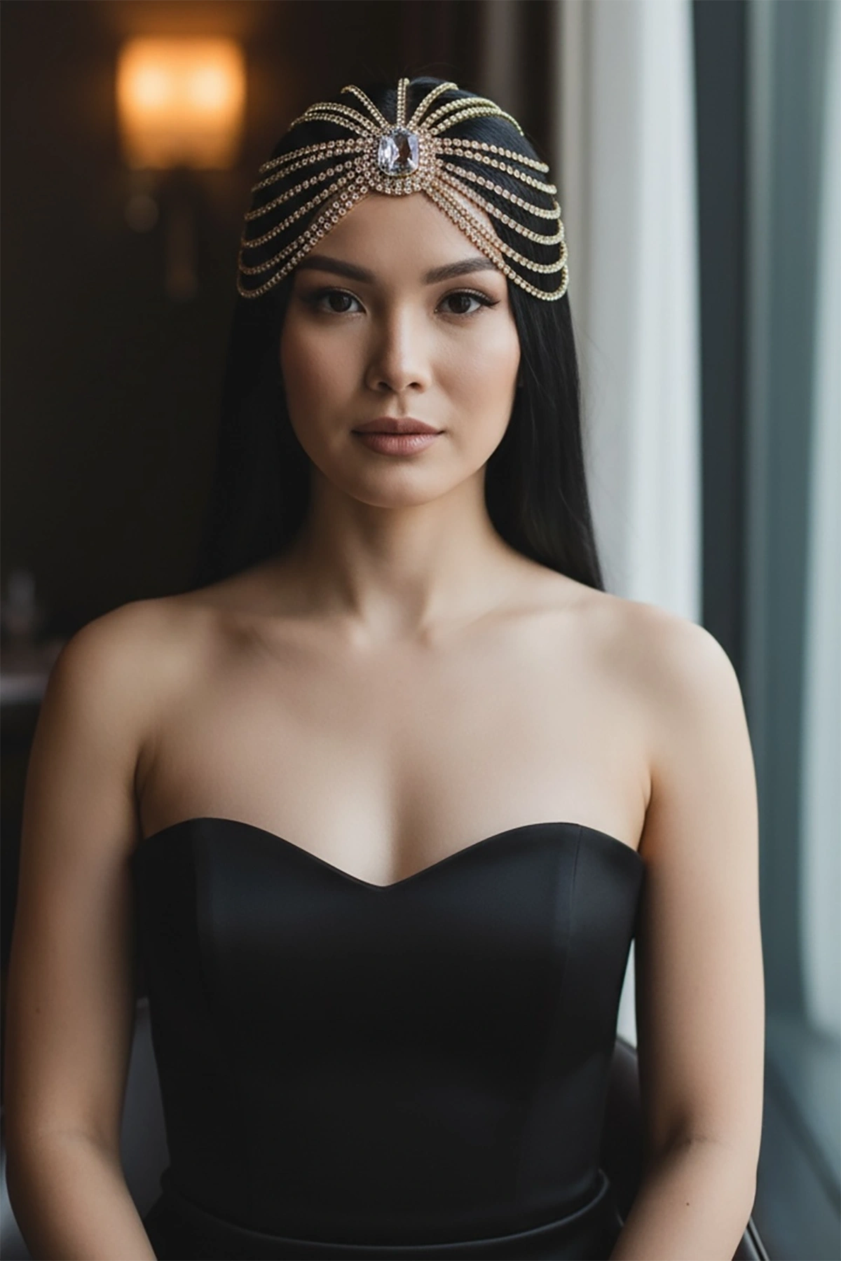 Düğün, nişan, kına, davet, çekim ve özel organizasyonlar için ideal olan bu model; gelin, nedime ve özel gün kombinlerine mükemmel uyum sağlar. Rahat kullanımı sayesinde saçta ağırlık yapmaz ve gün boyu konfor sunar.