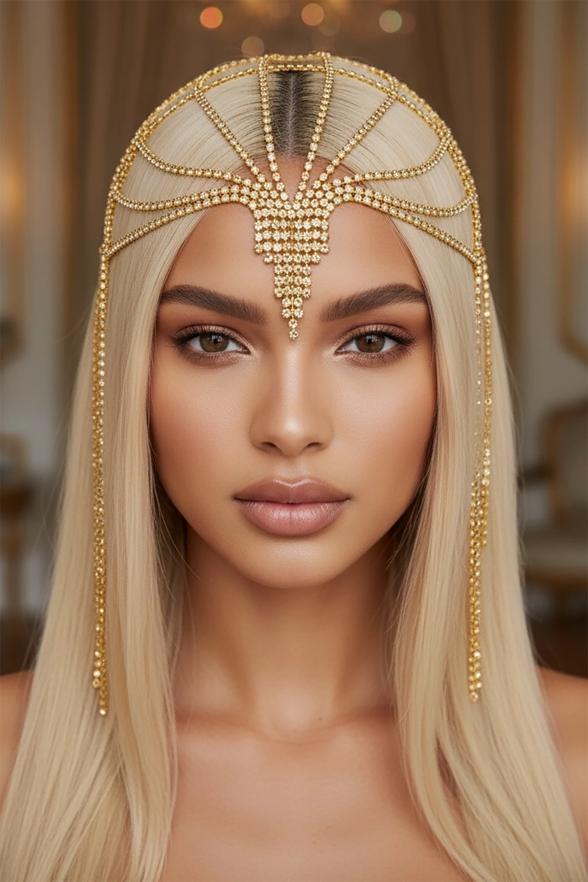 Altın Renk Taş Detaylı Saç Aksesuarı/Kına Aksesuarı