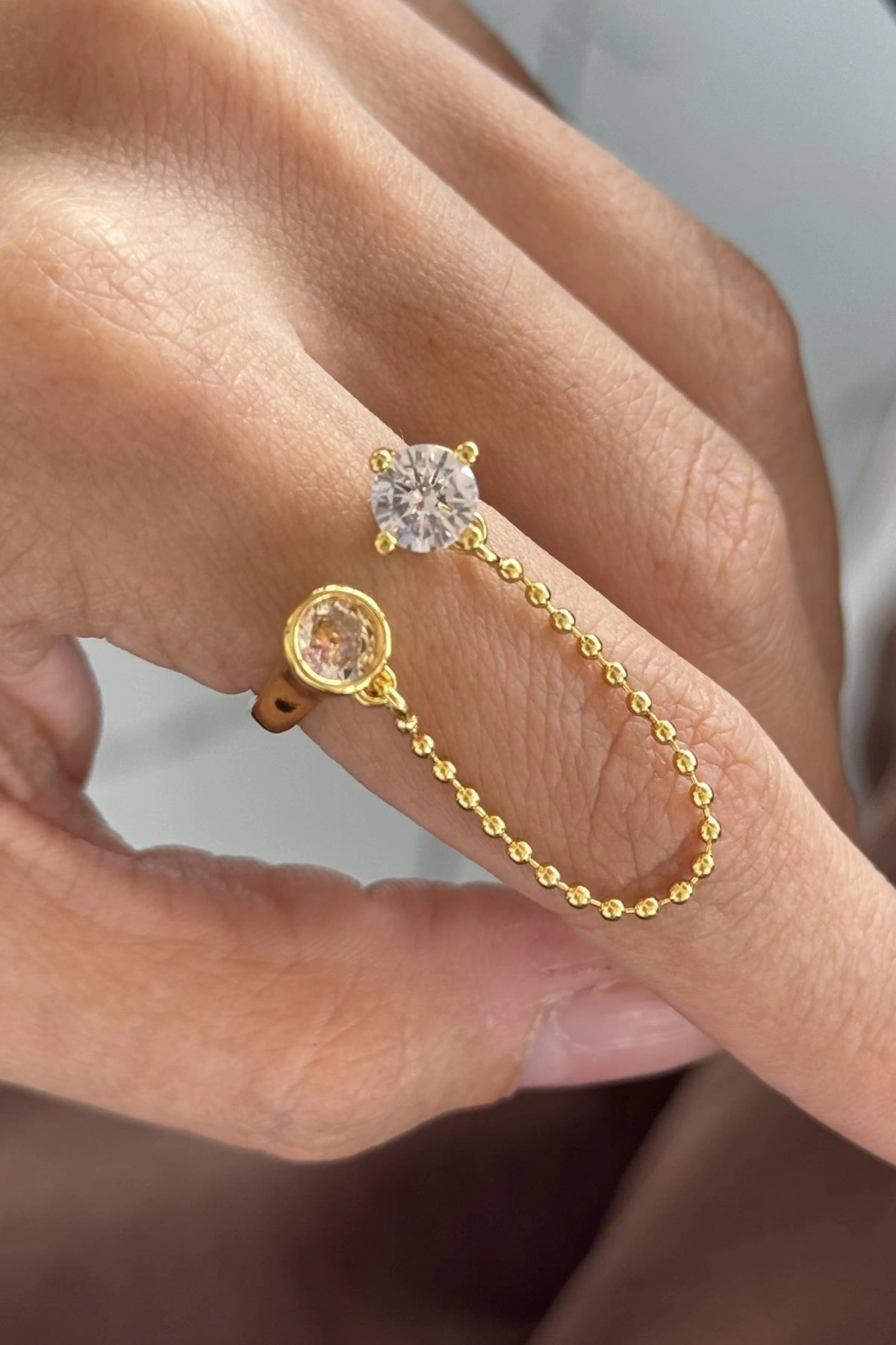 Altın Renk Taş Detaylı Sallantılı Ayarlanabilir Yüzük