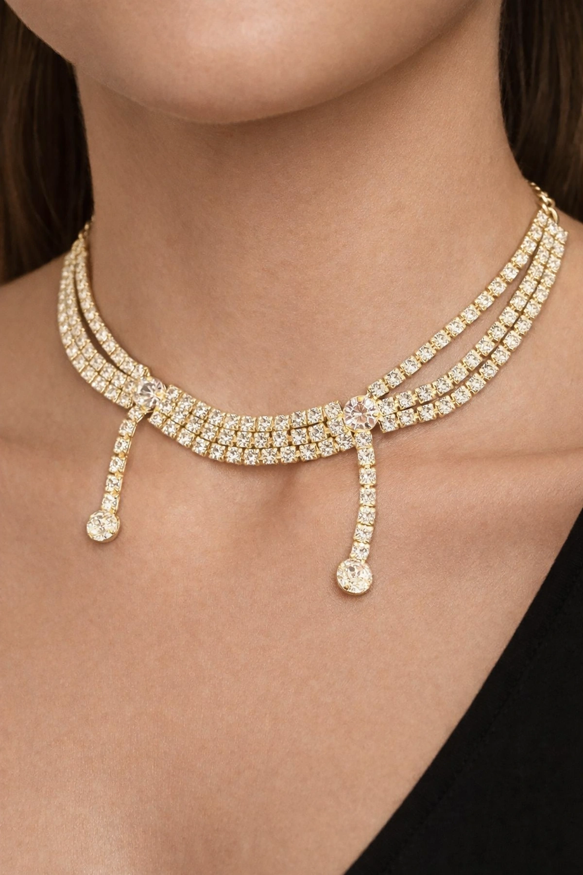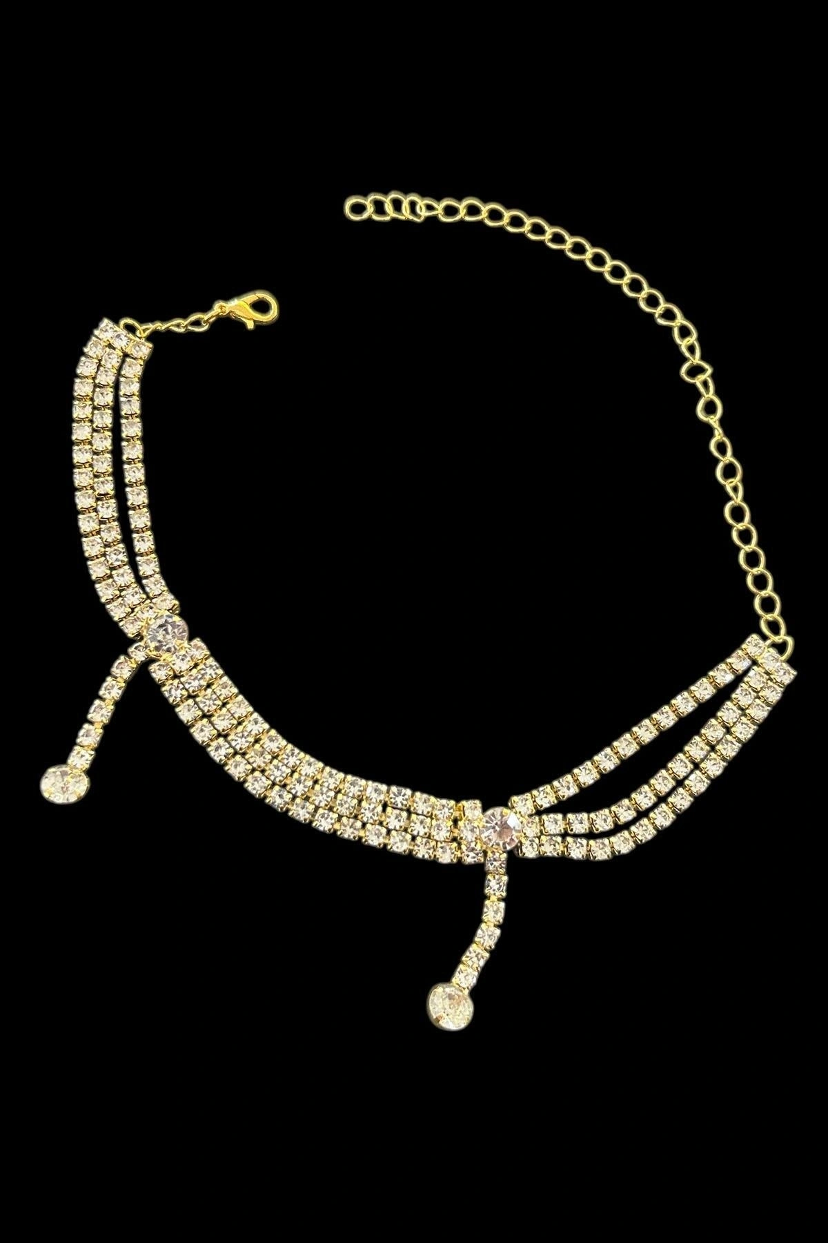Altın Renk Taş Detaylı Tasarım Abiye Kolye