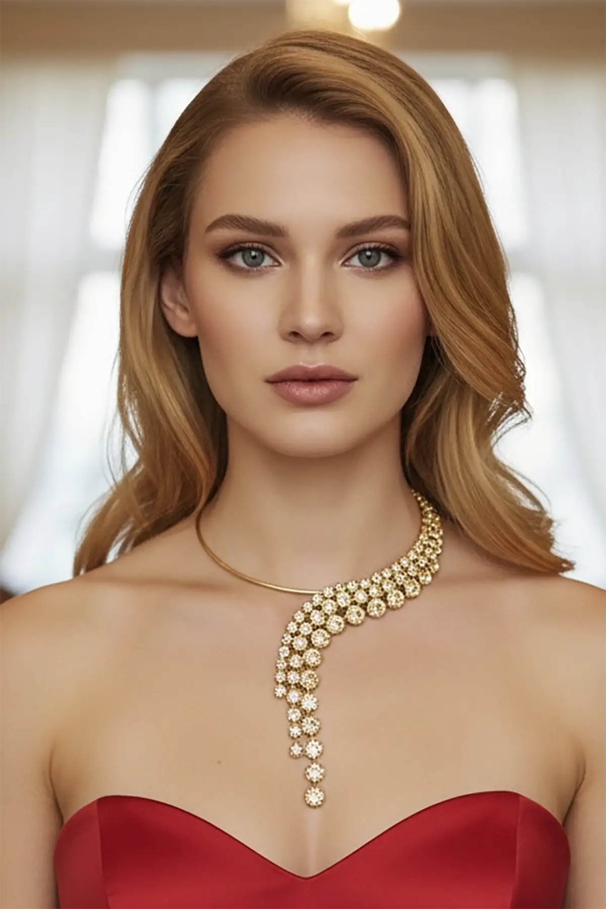 Altın Renk Taş Detaylı Tasarım Abiye Kolye