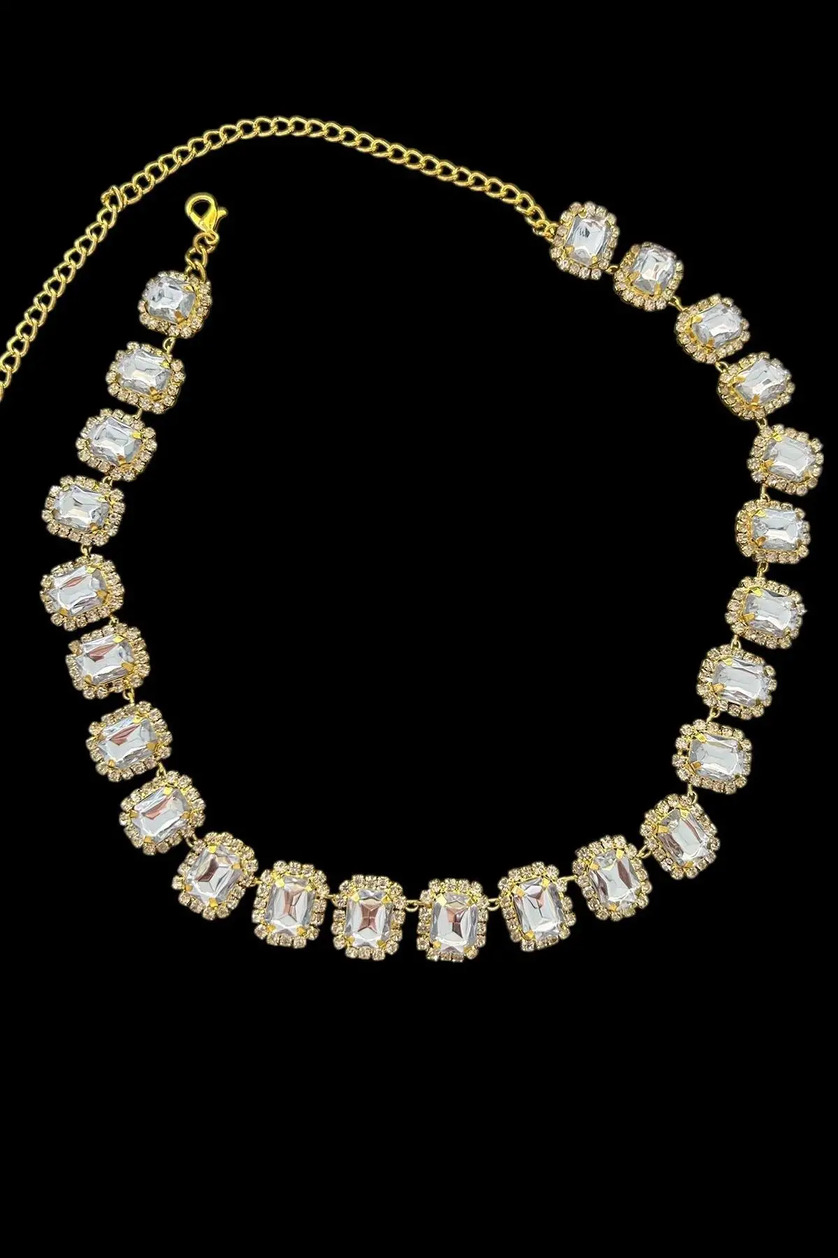 Altın Renk Taş Detaylı Tasarım Abiye Kolye