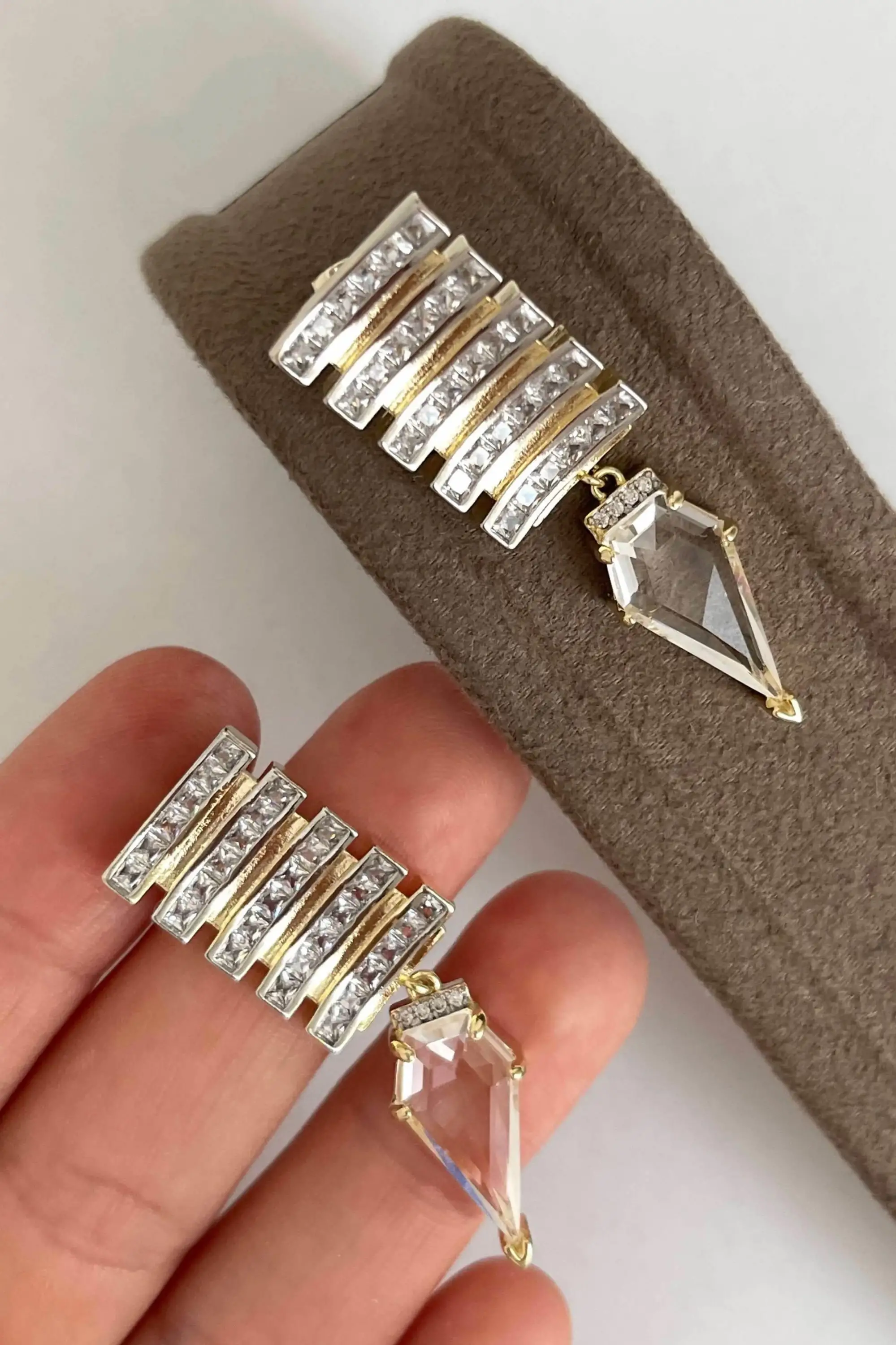 Altın Renk Taş Detaylı Tasarım Küpe (Çift)