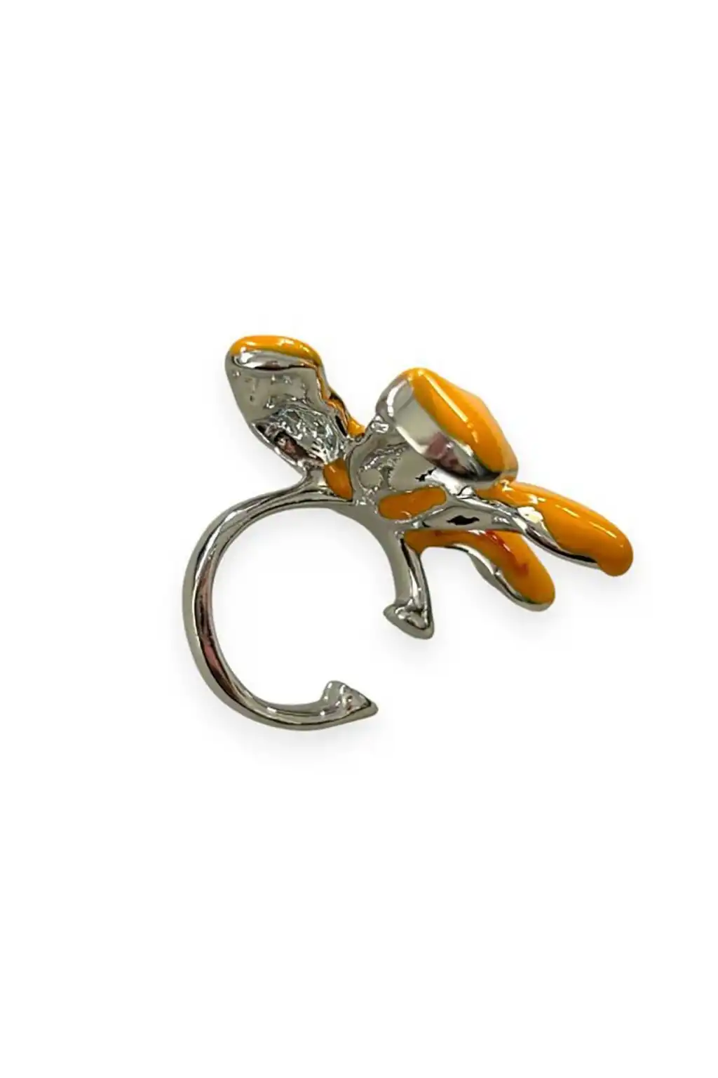 Sarı Ve Turuncu Renk Kurdele Figürlü 14K Altın Kaplama TX Ear Cuff (Tek)