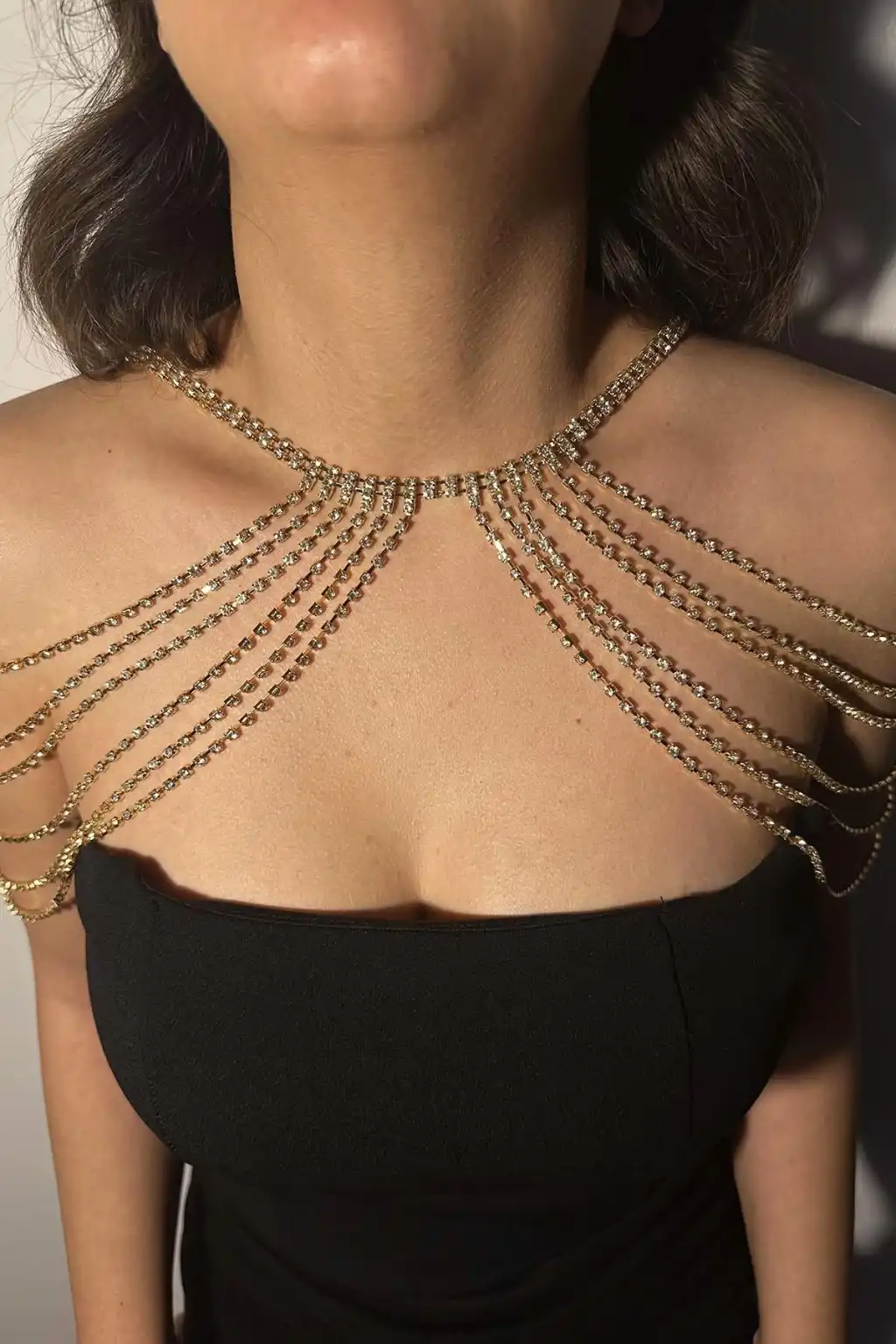 Altın Renk Taş Detaylı Tasarım Vücut Aksesuar