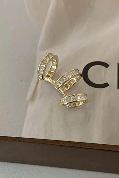 Altın Renk Taş Detaylı Üçlü Görünümlü Ear Cuff (Tek)