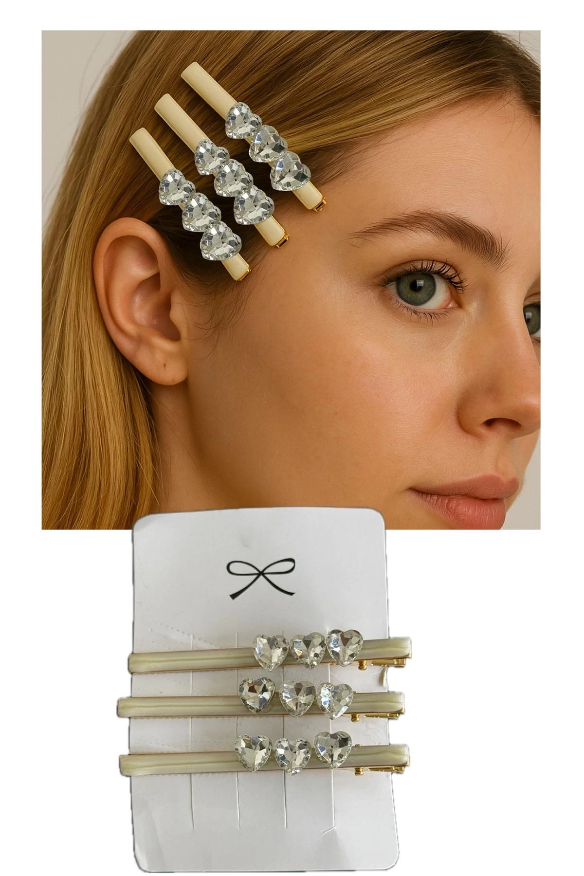 Altın Renk Taş Detaylı Üçlü Yan Toka