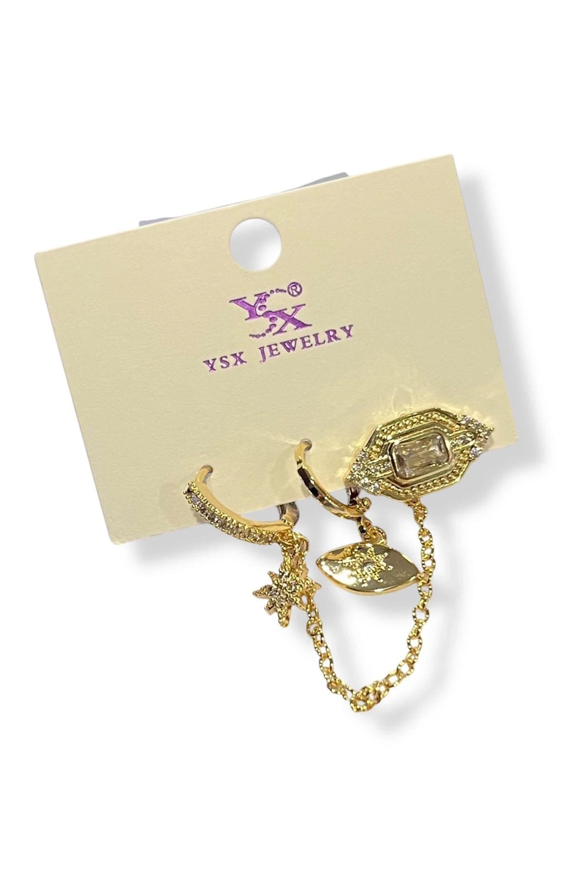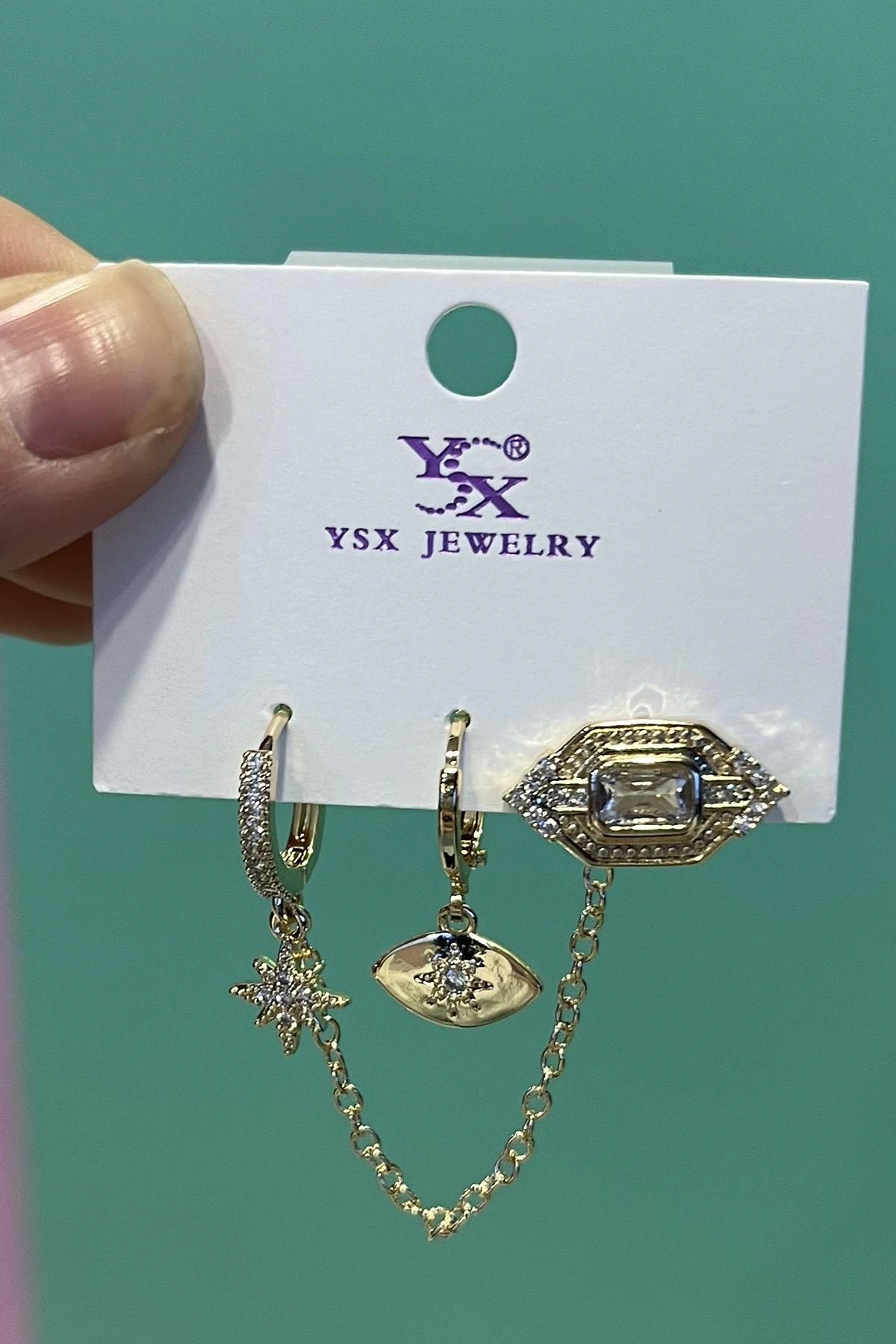 Altın Renk Taş Detaylı VİP 3'lü YSX Küpe Set