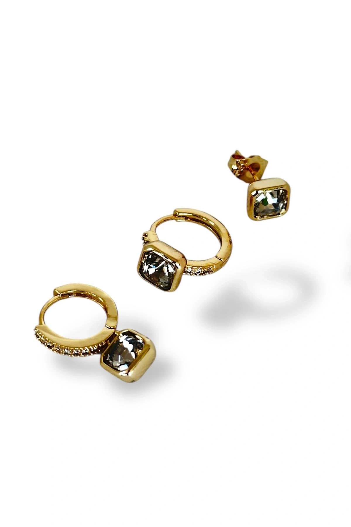 Altın Renk Taş Detaylı VİP 3'lü YSX Küpe Set