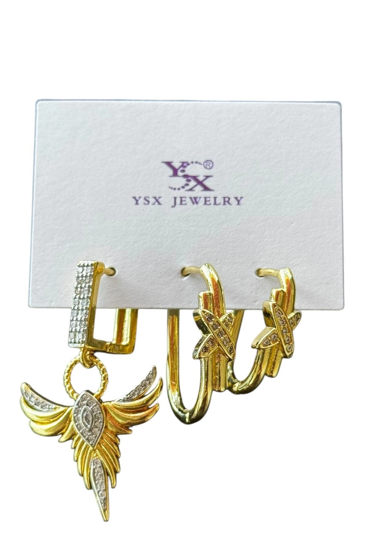 Altın Renk Taş Detaylı VİP 3'lü YSX Küpe Set