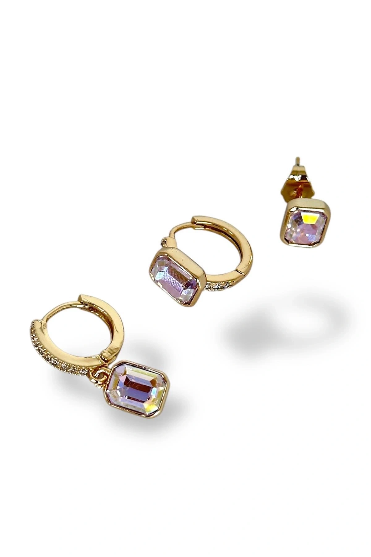 Altın Renk Taş Detaylı VİP 3'lü YSX Küpe Set